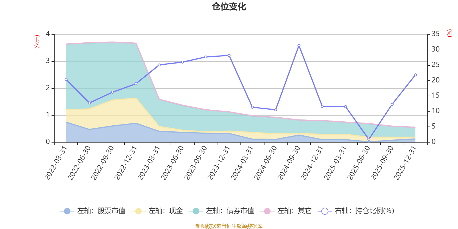 据定期报告数据统计,近三年平均股票仓位为18.19%,同类平均为19.2%。2024年三季度末基金达到31.41%的最高仓位,2025年上半年末最低,为0.91%。