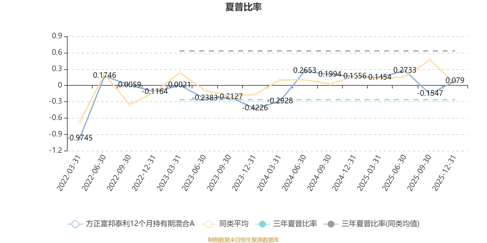 截至12月31日,基金近三年夏普比率为-0.2623,位于同类可比基金523/542。