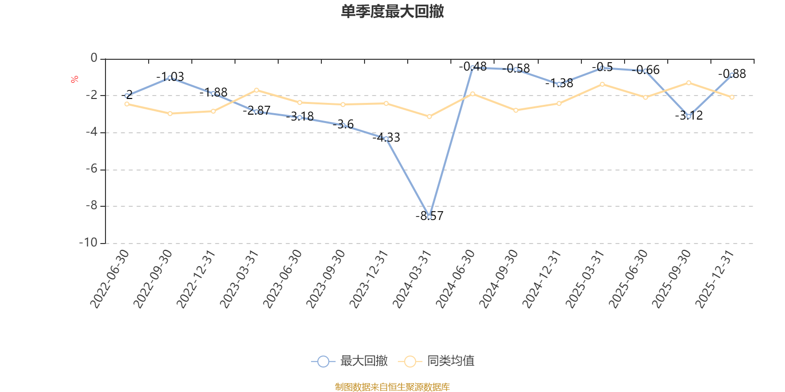 截至1月22日,基金近三年最大回撤为16.23%,同类可比基金排名493/527。单季度最大回撤出现在2024年一季度,为8.57%。