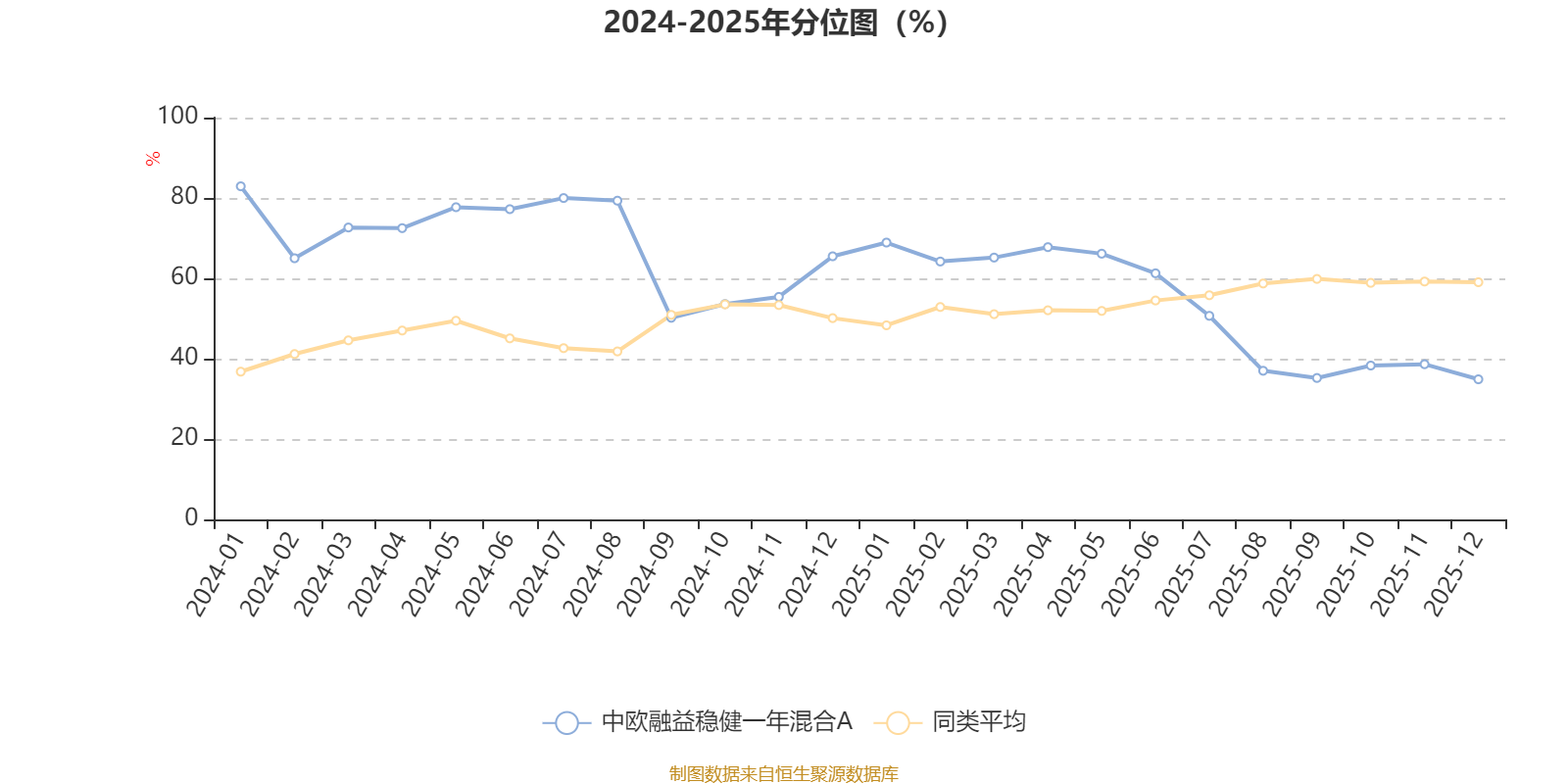 通过所选区间该基金净值增长率分位图,可以观察该基金与同类基金业绩比较情况。图为坐标原点到区间内某时点的净值增长率在同类基金中的分位数。