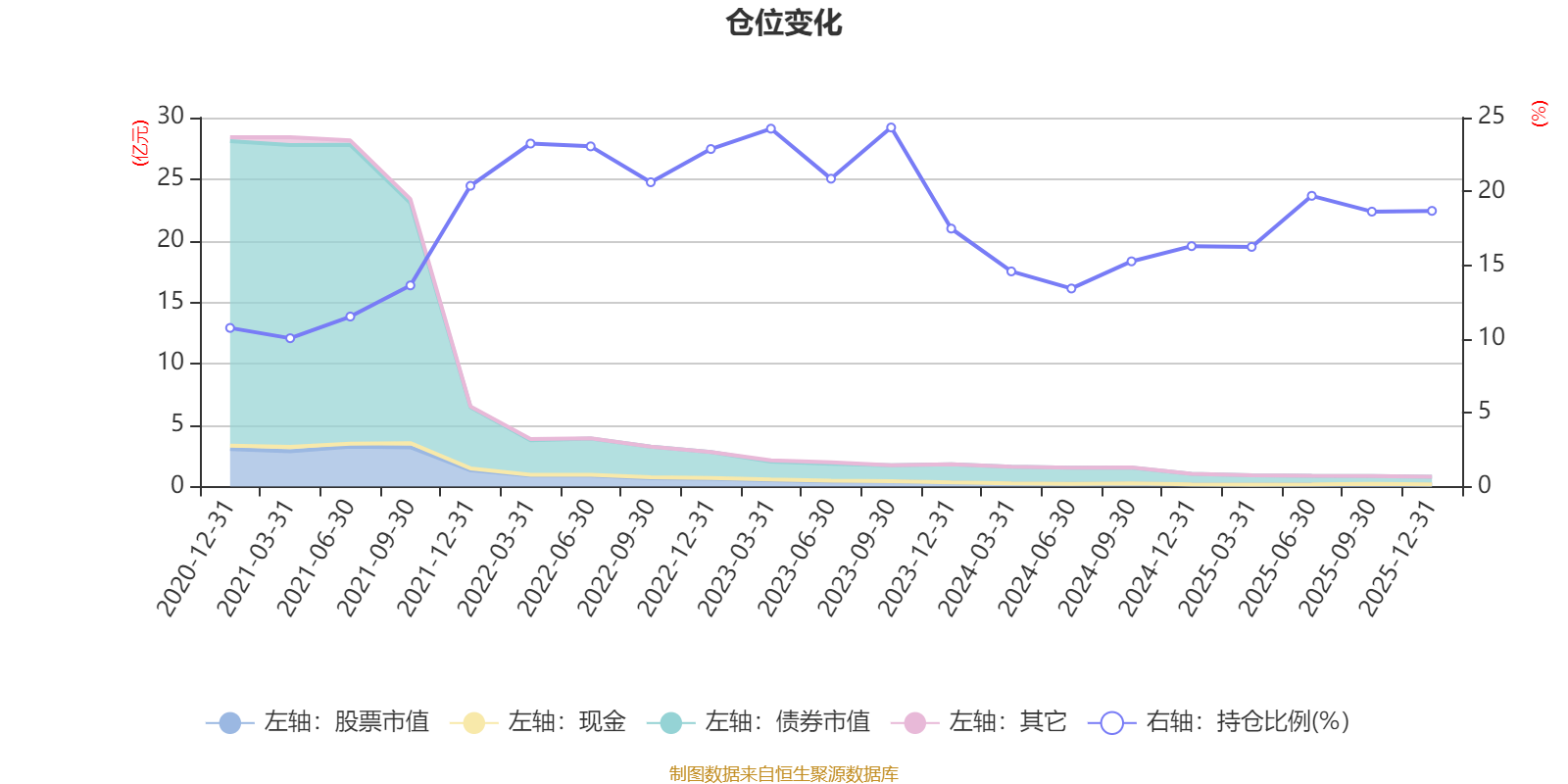 基金管理人在四季报中表示,展望2026年,我们对于权益市场整体依然比较有信心,背后主要是资金层面的影响。当前利率环境下,资金从纯债向风险资产的迁移并未停止,无论是权益、商品,都在享受资金流的推动。但是从基本面和估值角度来看,权益2026年相比2025年的投资难度在增加,景气度向上以及景气触底有向上预期的方向,都经历了一轮明显的估值修复。而估值没有明显修复的板块,基本面还处在左侧阶段。也就是说,当前各类资产的估值洼地已经基本被填平,“简单题”已经被做完。2026年的机会可能来自于两方面:一是资金推动下部分资产估值上行的收益,或将以科技为代表,新兴产业受到政策和资金的双重推动,估值的天花板打开。但相对应的,这类资产的波动也可能会进一步加大。二是基本面出现大幅改善,景气度左侧的板块开启估值修复,或将以消费、地产为代表。但胜率目前看起来不太明朗,可能还需要一定的时间。在此之前,资金流的变化、宏观叙事、产业逻辑可能还是市场最核心的推动因素。