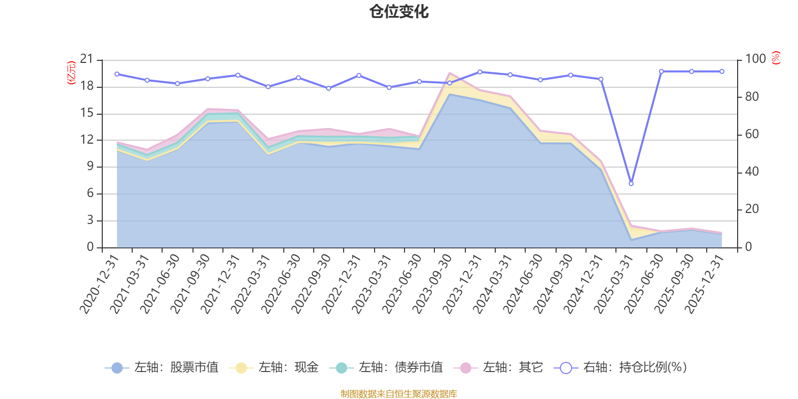 据定期报告数据统计,近三年平均股票仓位为86.13%,同类平均为85.83%。2025年末基金达到93.84%的最高仓位,2025年一季度末最低,为34.09%。