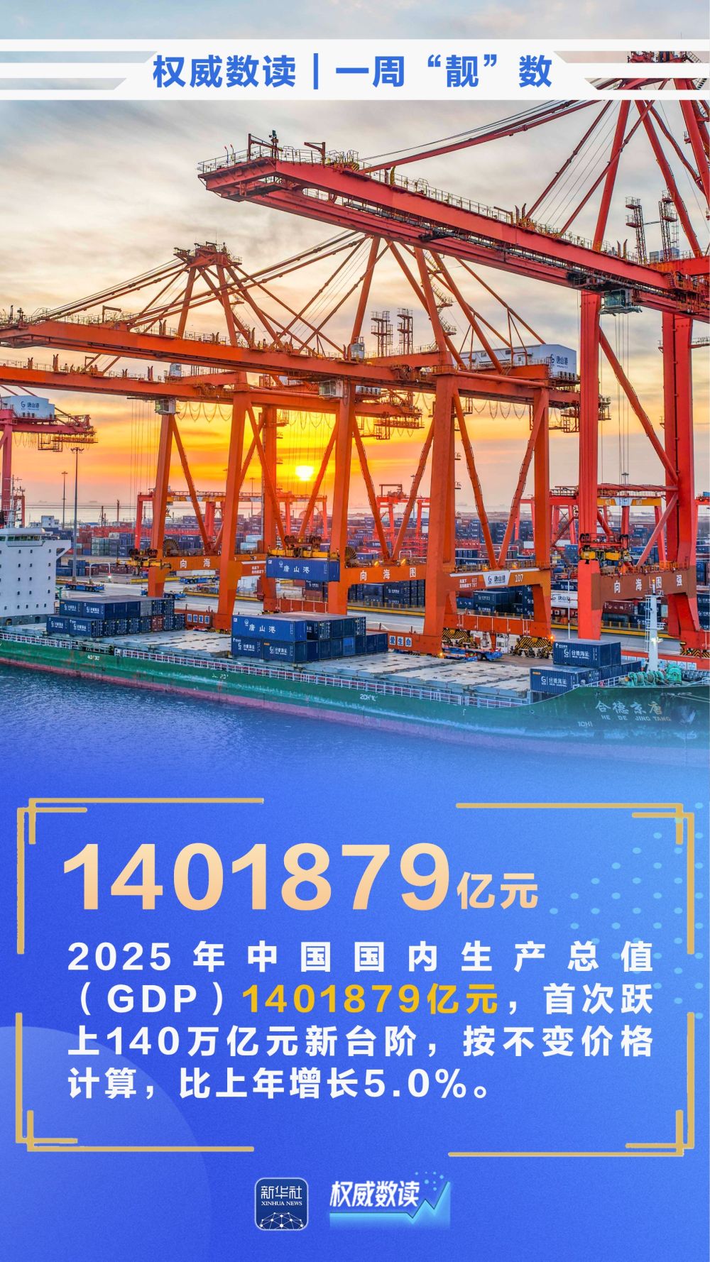2025年我国国内生产总值(GDP)1401879亿元;今年春运将从2月2日开始,3月13日结束,共计40天;2026年第一批936亿元超长期特别国债支持设备更新资金已经下达……本周,这些数据最值得关注!