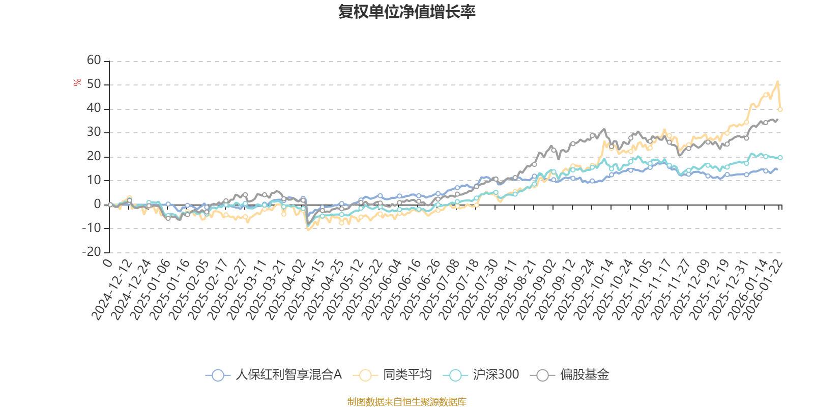 截至1月21日,人保红利智享混合A近三个月复权单位净值增长率为0.47%,位于同类可比基金49/49;近半年复权单位净值增长率为4.73%,位于同类可比基金48/49;近一年复权单位净值增长率为16.00%,位于同类可比基金45/46。