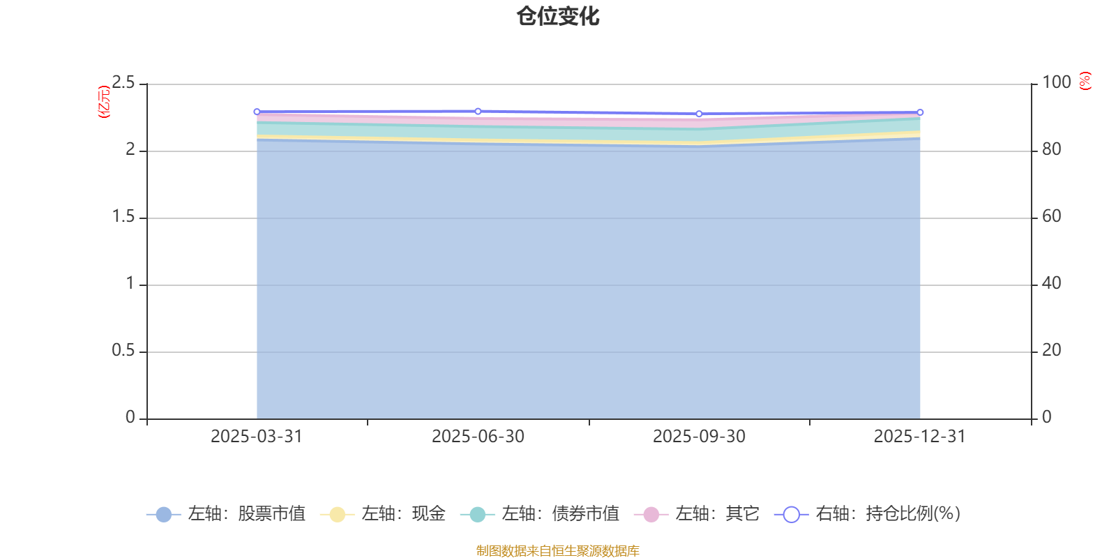 据定期报告数据统计,基金股票仓位长期保持较高水平,成立以来平均股票仓位为91.46%,同类平均为86.41%。2025年上半年末基金达到91.75%的最高仓位,2025年三季度末最低,为91.01%。