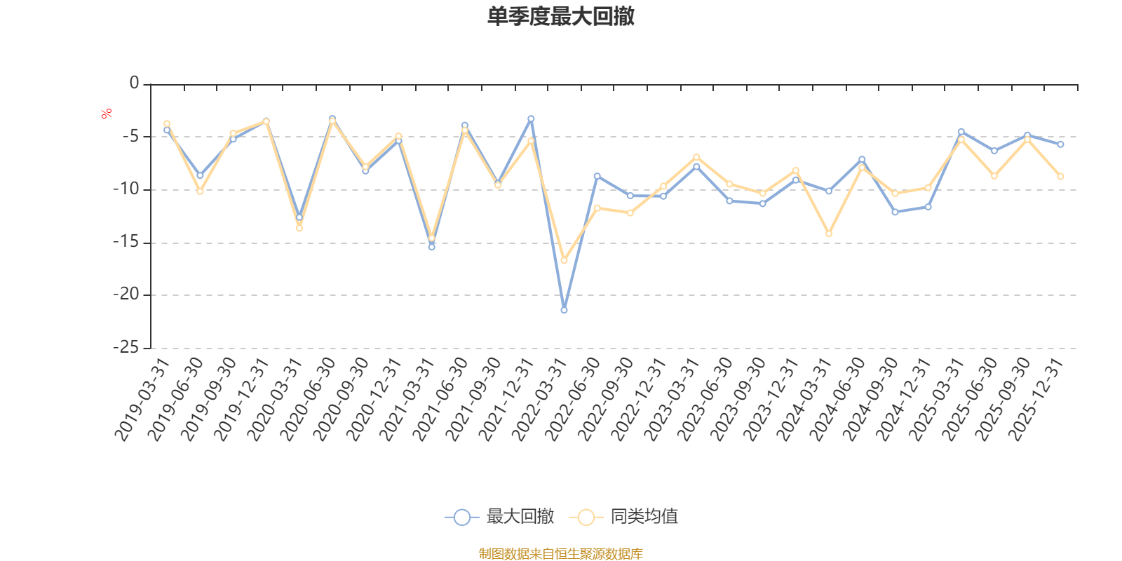 通过所选区间该基金净值增长率分位图,可以观察该基金与同类基金业绩比较情况。图为坐标原点到区间内某时点的净值增长率在同类基金中的分位数。