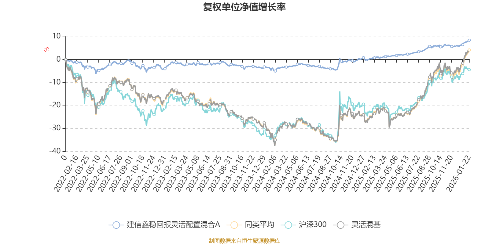 截至1月22日,建信鑫稳回报灵活配置混合A近三个月复权单位净值增长率为2.59%,位于同类可比基金993/1286;近半年复权单位净值增长率为4.85%,位于同类可比基金1075/1286;近一年复权单位净值增长率为8.01%,位于同类可比基金1125/1286;近三年复权单位净值增长率为10.24%,位于同类可比基金788/1286。