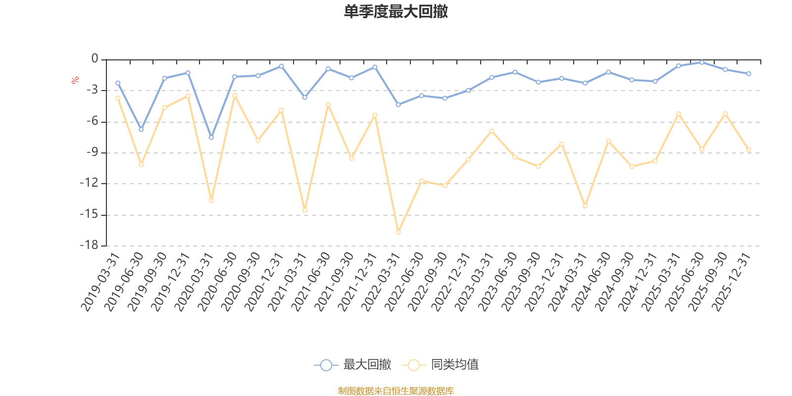 通过所选区间该基金净值增长率分位图,可以观察该基金与同类基金业绩比较情况。图为坐标原点到区间内某时点的净值增长率在同类基金中的分位数。