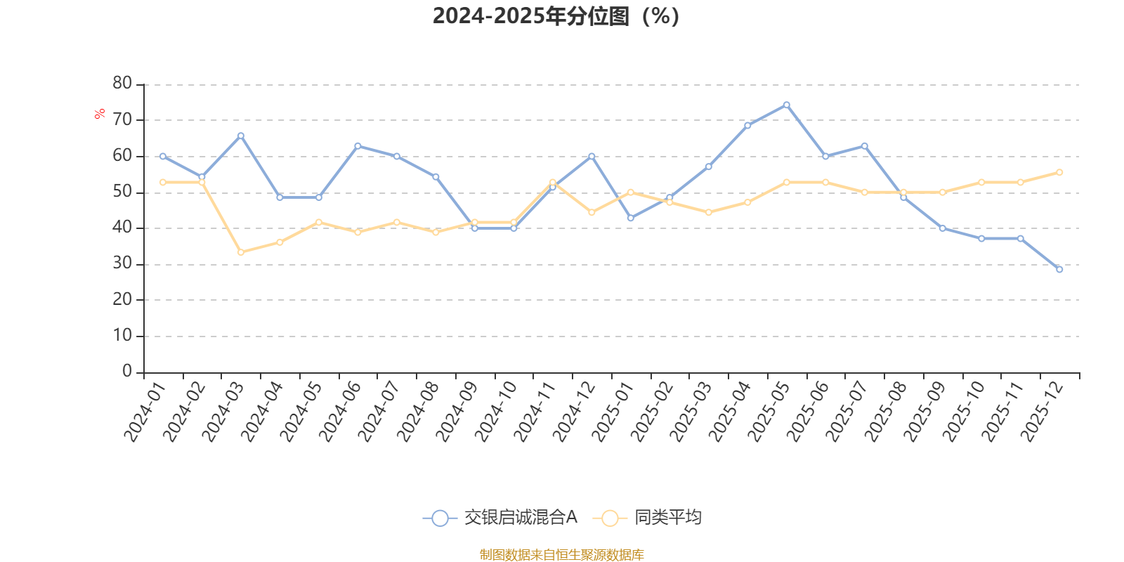 通过所选区间该基金净值增长率分位图,可以观察该基金与同类基金业绩比较情况。图为坐标原点到区间内某时点的净值增长率在同类基金中的分位数。