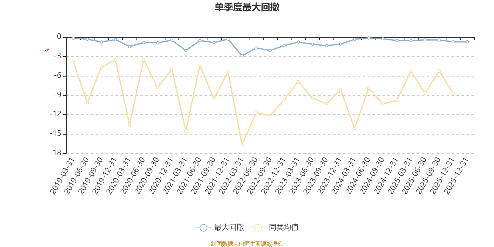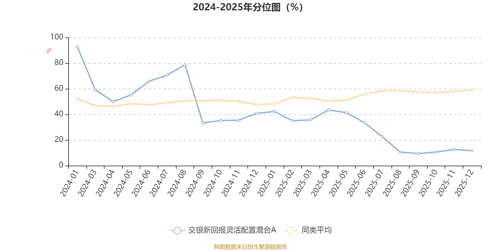 通过所选区间该基金净值增长率分位图,可以观察该基金与同类基金业绩比较情况。图为坐标原点到区间内某时点的净值增长率在同类基金中的分位数。