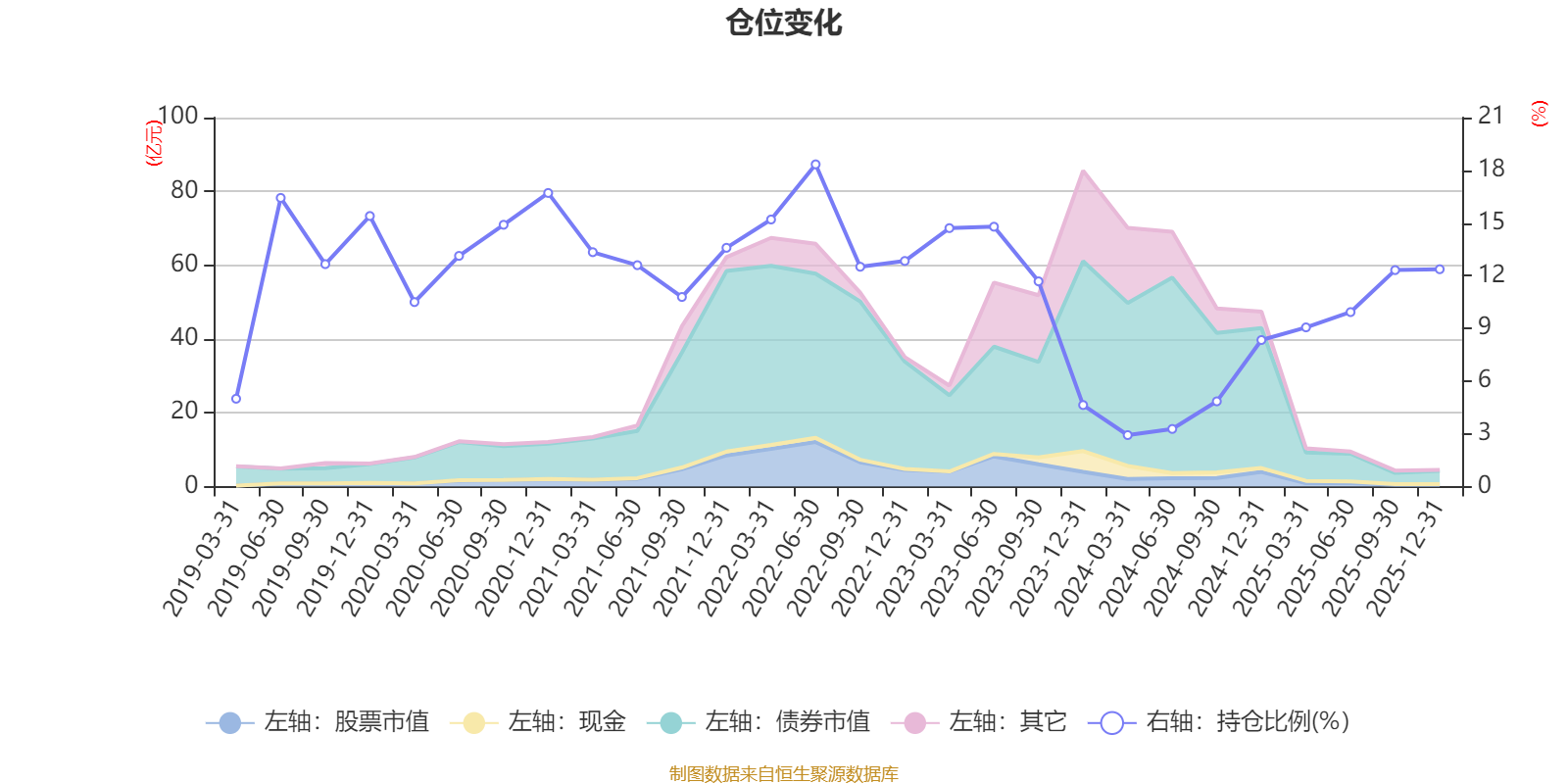 据定期报告数据统计,近三年平均股票仓位为9.08%,同类平均为72.57%。2022年上半年末基金达到18.34%的最高仓位,2024年一季度末最低,为2.93%。