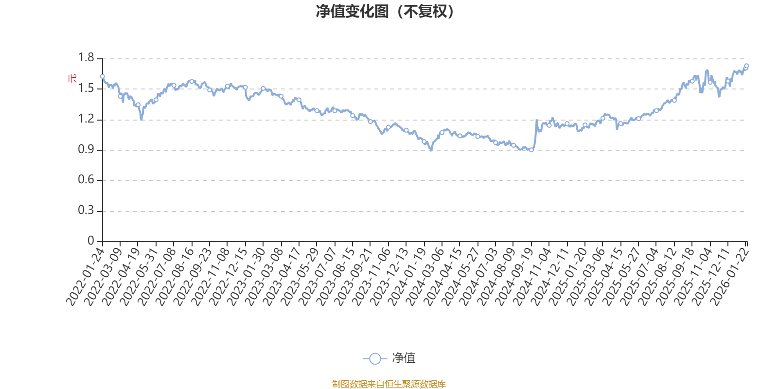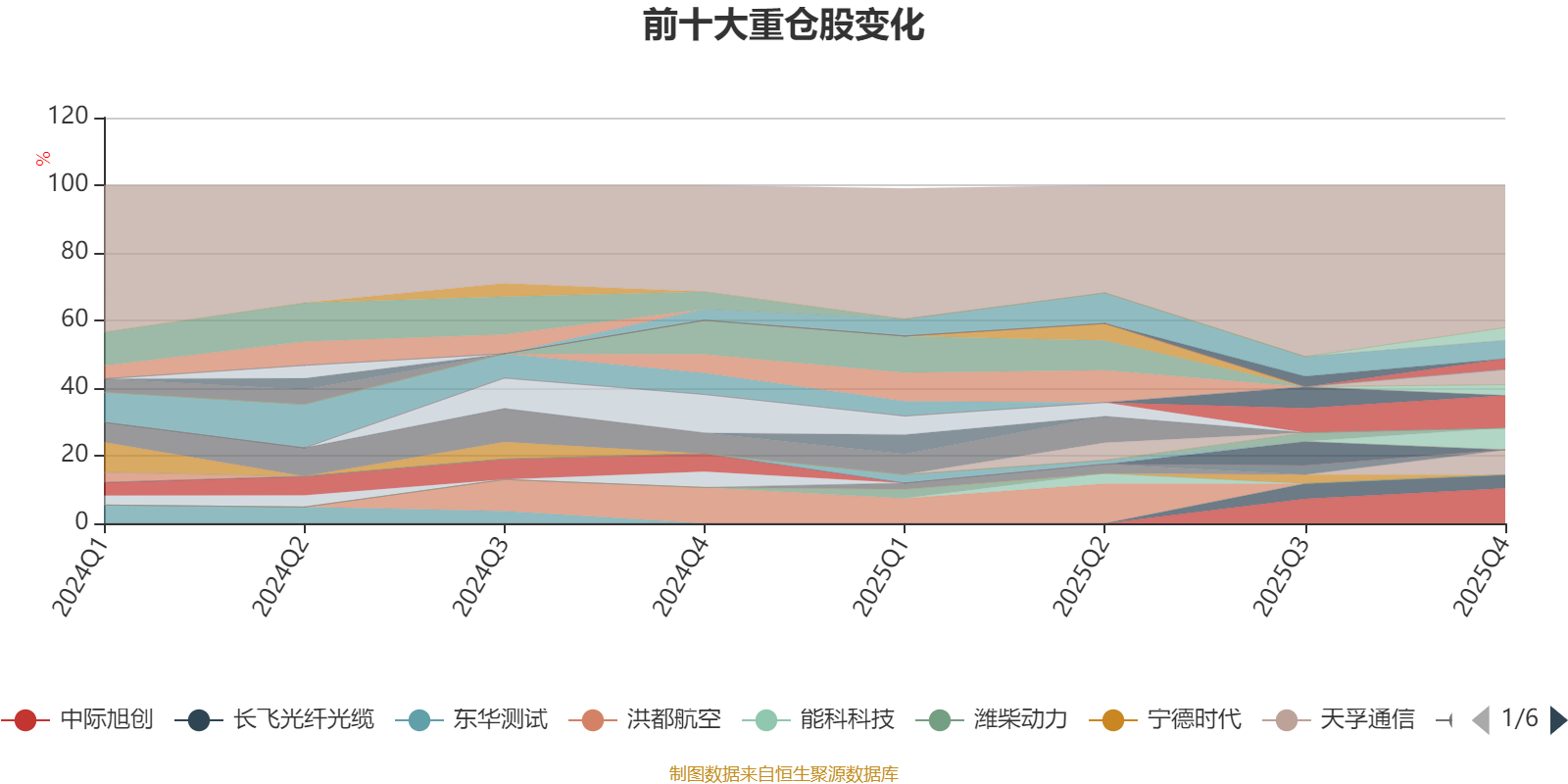 截至2025年四季度末,基金十大重仓股分别是中际旭创、新易盛、天孚通信、生益科技、睿创微纳、阳光电源、长飞光纤光缆、深南电路、胜宏科技、麦格米特。