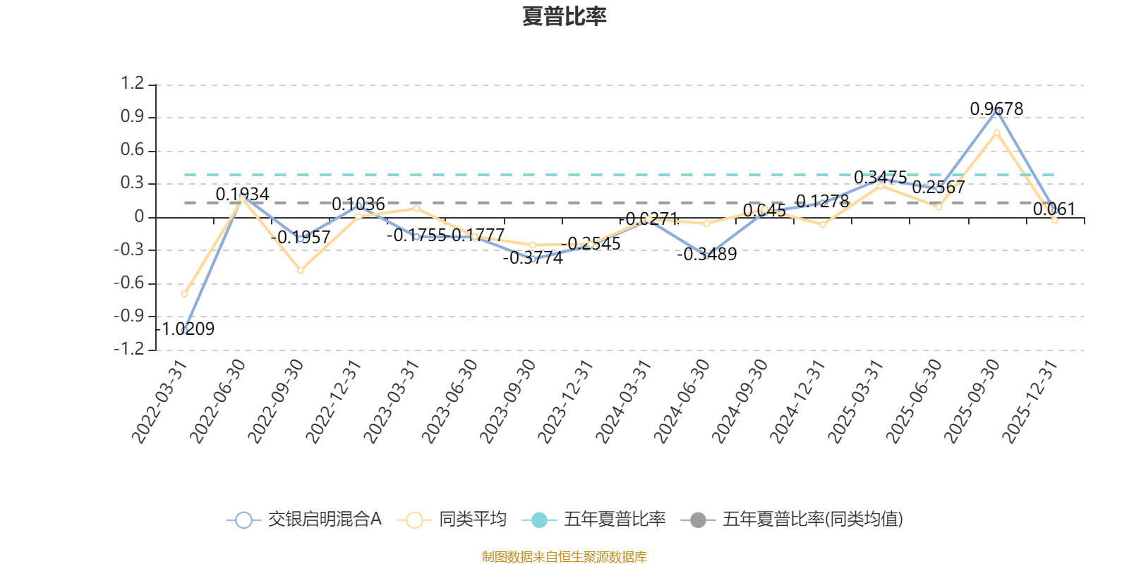截至12月31日,基金近三年夏普比率为0.3972,位于同类可比基金121/176。