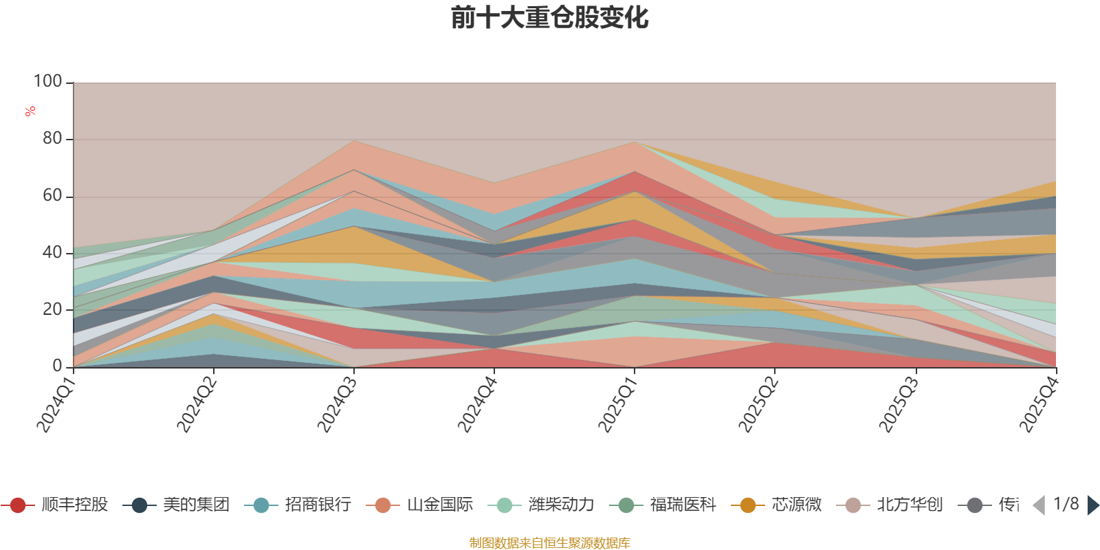 截至2025年四季度末,基金十大重仓股分别是分众传媒、牧原股份、滨江集团、华测检测、贵州茅台、福昕软件、吉祥航空、新和成、东方证券、中国太保。