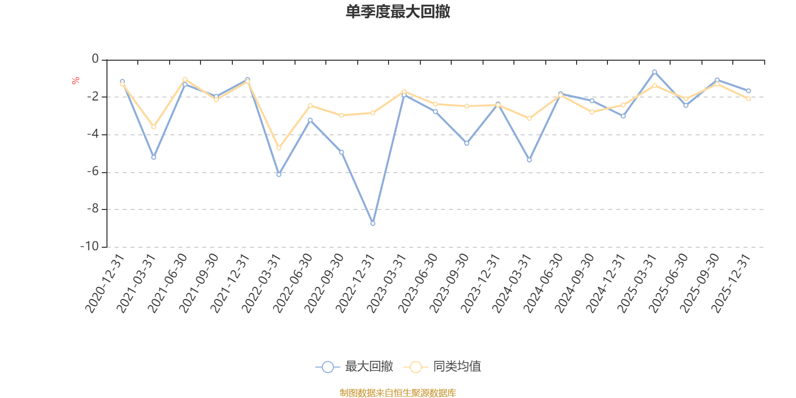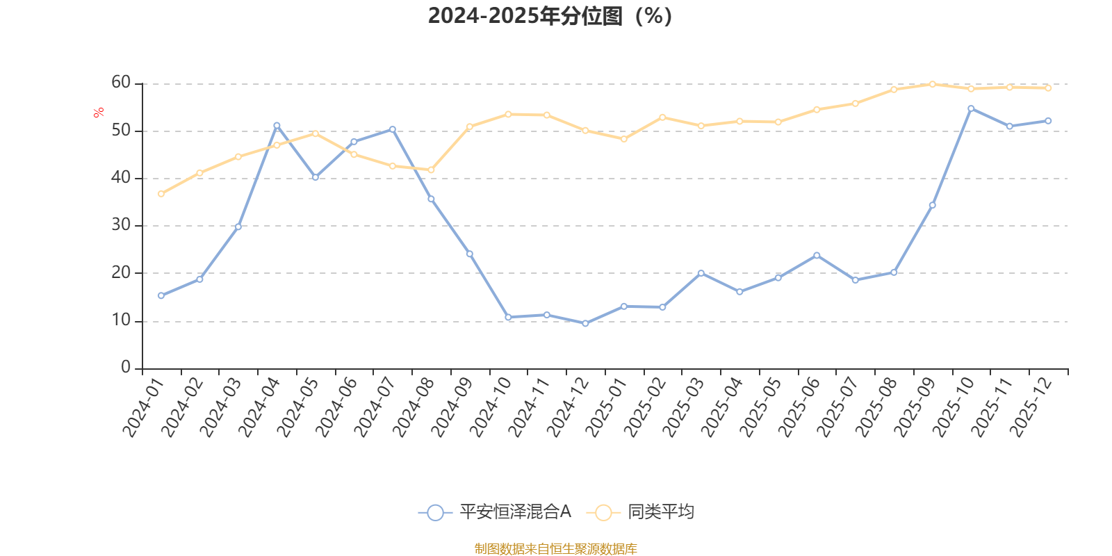 通过所选区间该基金净值增长率分位图,可以观察该基金与同类基金业绩比较情况。图为坐标原点到区间内某时点的净值增长率在同类基金中的分位数。