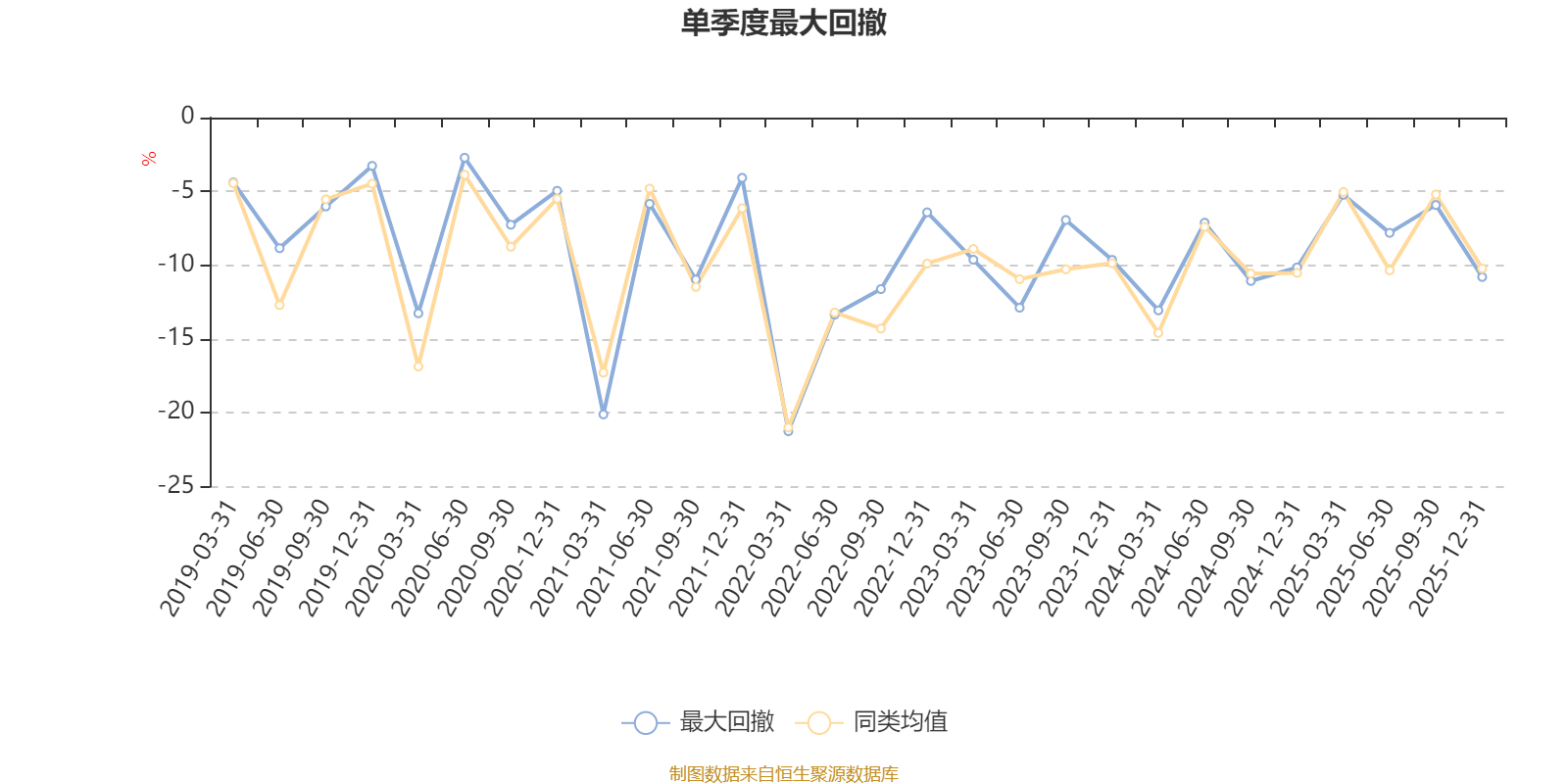 通过所选区间该基金净值增长率分位图,可以观察该基金与同类基金业绩比较情况。图为坐标原点到区间内某时点的净值增长率在同类基金中的分位数。