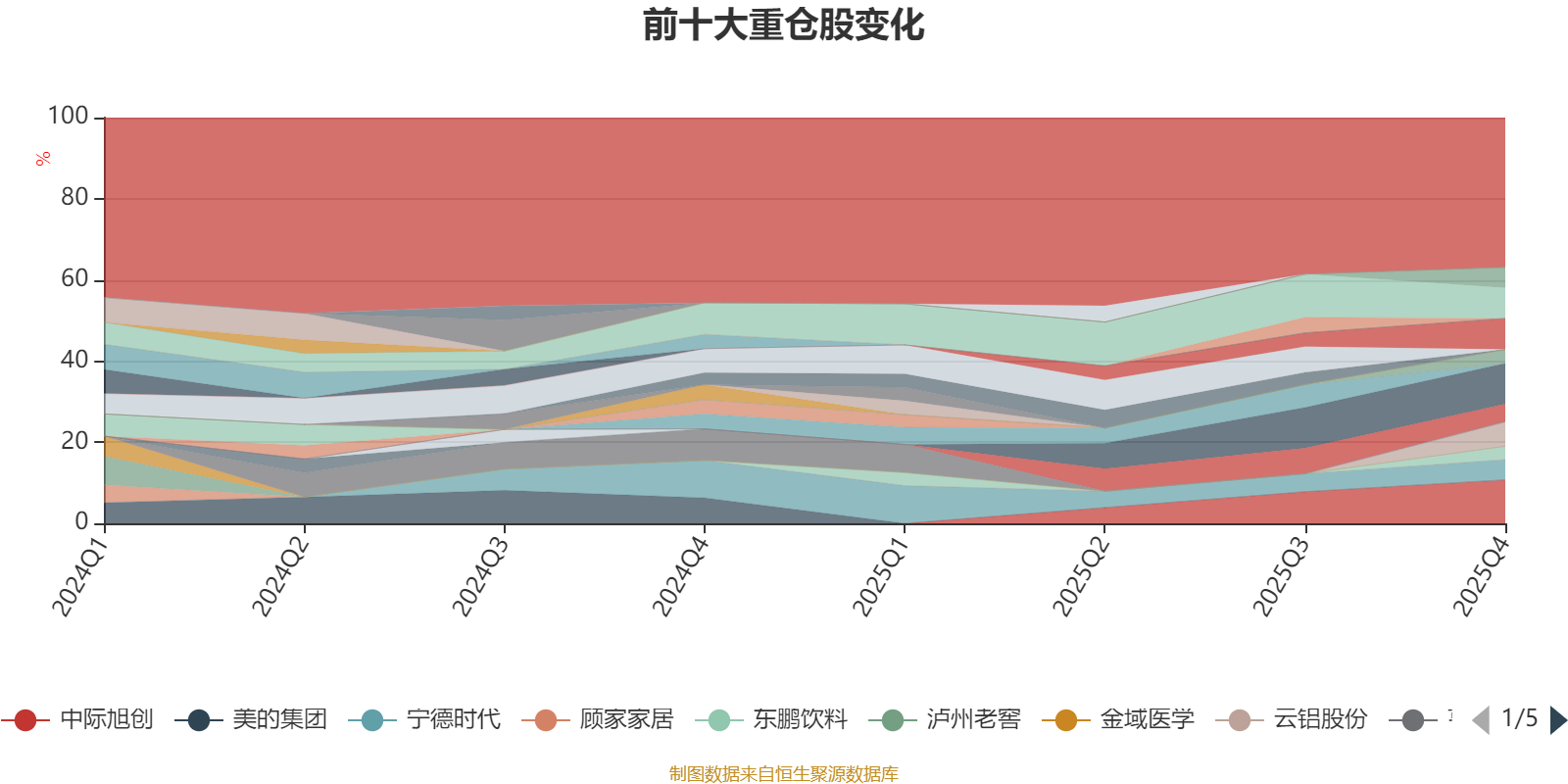 该基金持股集中度较高。截至2025年四季度末,基金十大重仓股分别是中际旭创、新易盛、睿创微纳、恺英网络、云铝股份、巨人网络、宁德时代、沪电股份、万华化学、东鹏饮料。