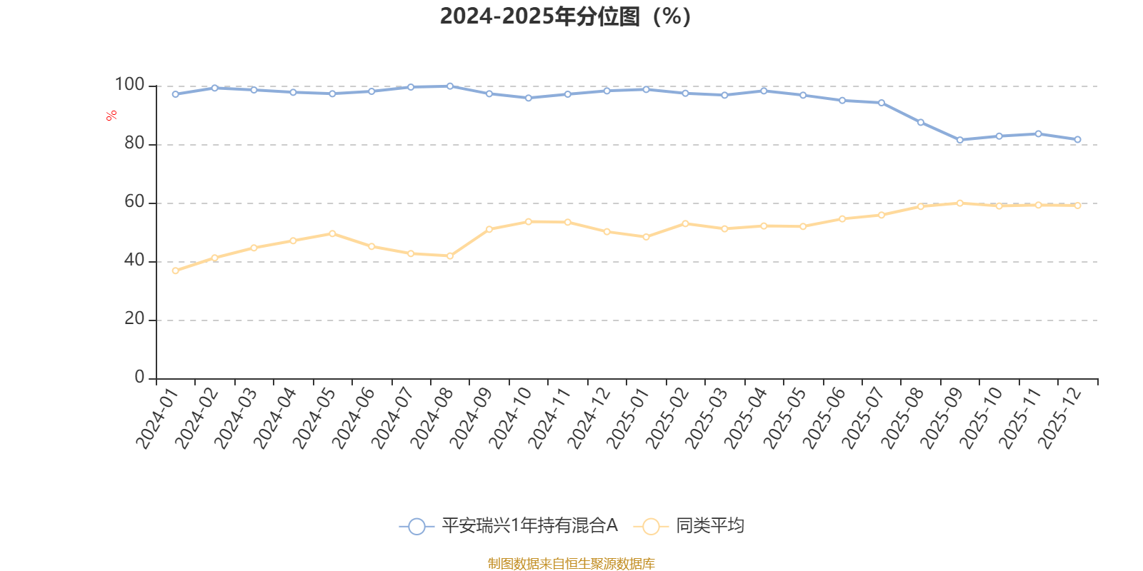 通过所选区间该基金净值增长率分位图,可以观察该基金与同类基金业绩比较情况。图为坐标原点到区间内某时点的净值增长率在同类基金中的分位数。