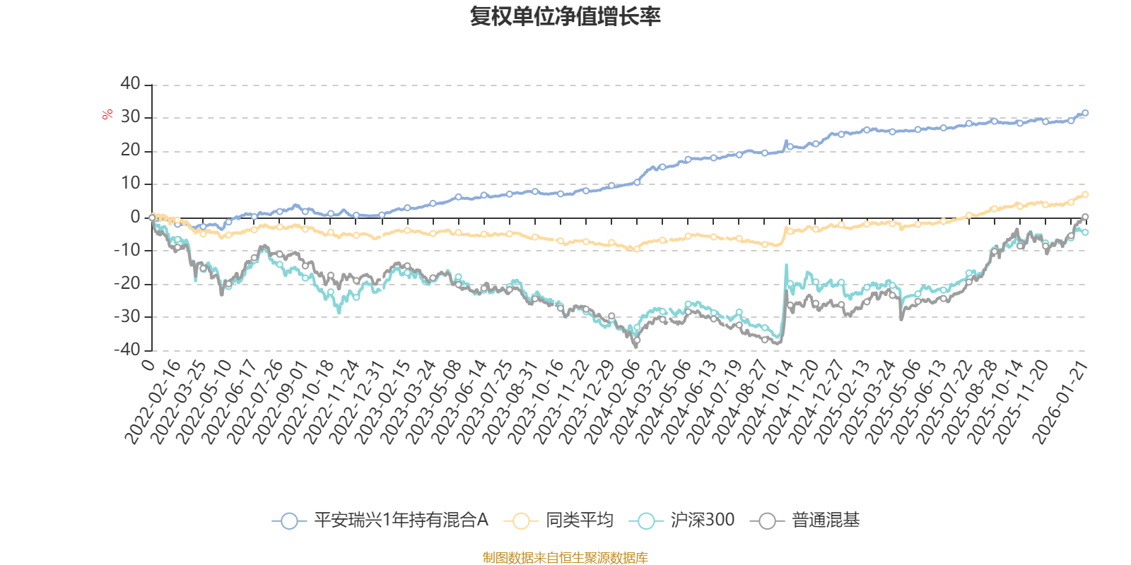 截至1月21日,平安瑞兴1年持有混合A近三个月复权单位净值增长率为2.23%,位于同类可比基金300/629;近半年复权单位净值增长率为2.52%,位于同类可比基金471/629;近一年复权单位净值增长率为4.64%,位于同类可比基金500/626;近三年复权单位净值增长率为28.63%,位于同类可比基金35/564。