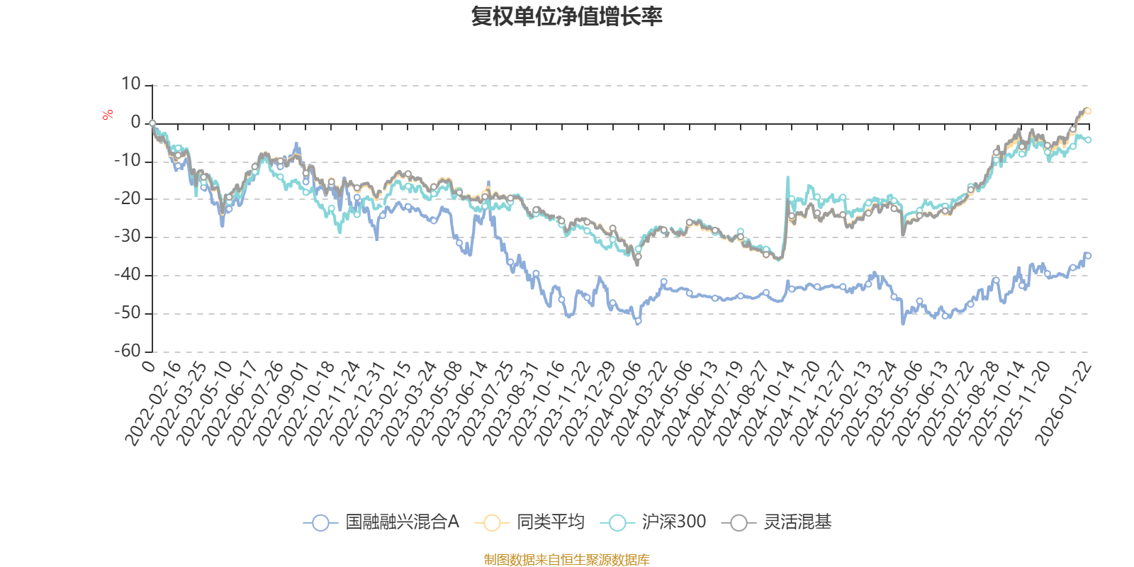 该基金属于灵活配置型基金。截至1月22日,单位净值为0.753元。基金经理是许银丰和贾雨璇,目前共同管理的3只基金近一年均为正收益。其中,截至1月22日,国融融兴混合A近一年复权单位净值增长率最高,达12.85%;国融融信消费严选混合A最低,为7.12%。