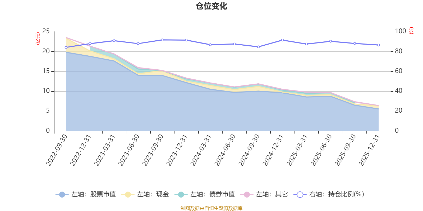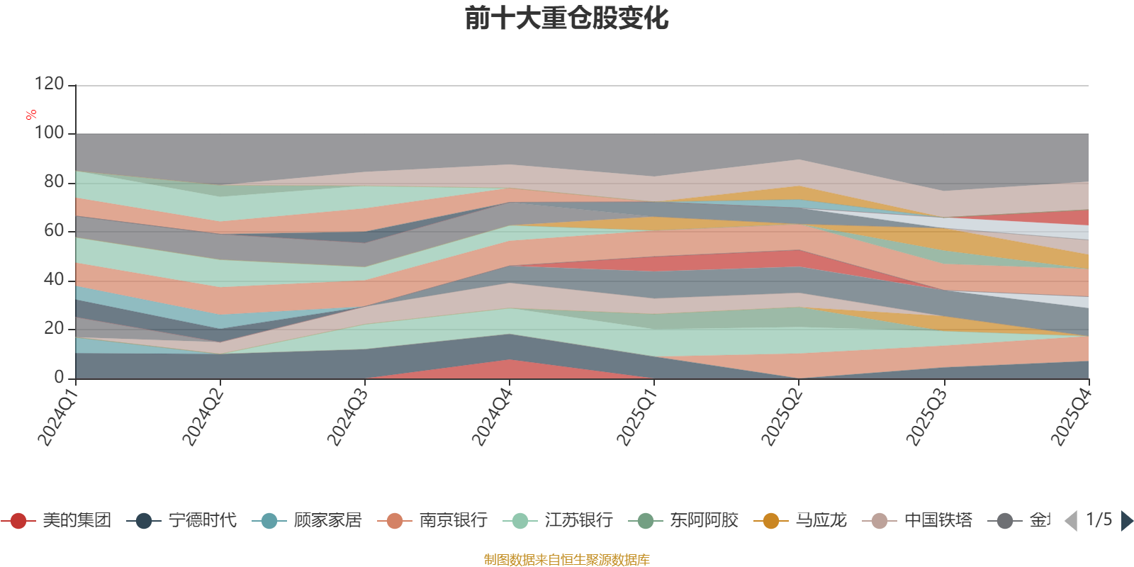 该基金持股集中度较高,近2年前十大重仓股集中度长期超过60%。截至2025年四季度末,基金十大重仓股分别是杭州银行、宁波银行、腾讯控股、南京银行、宁德时代、中国太保、绿城服务、中国平安、瑞丰新材、万国黄金集团。