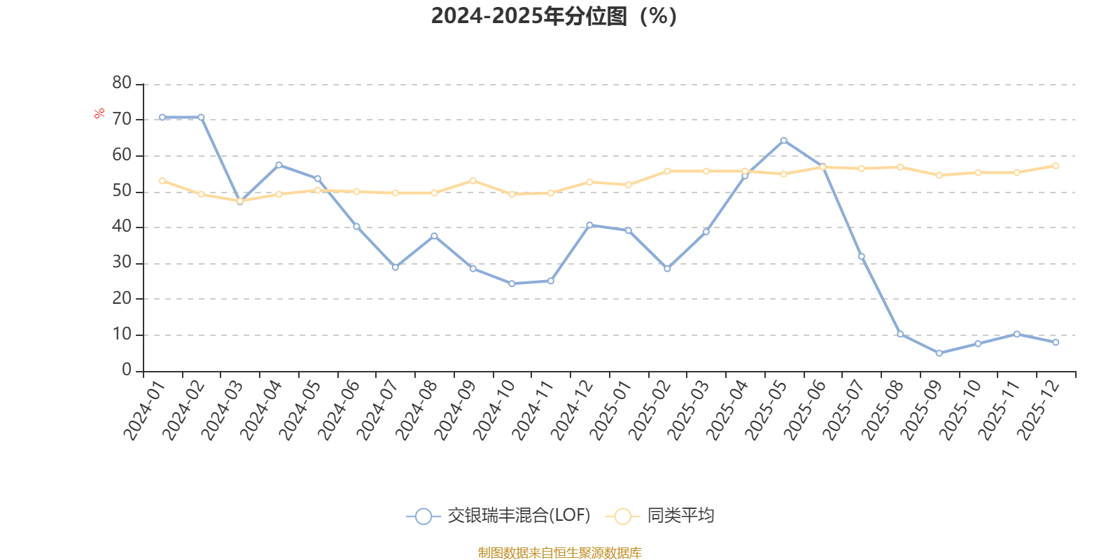 通过所选区间该基金净值增长率分位图,可以观察该基金与同类基金业绩比较情况。图为坐标原点到区间内某时点的净值增长率在同类基金中的分位数。