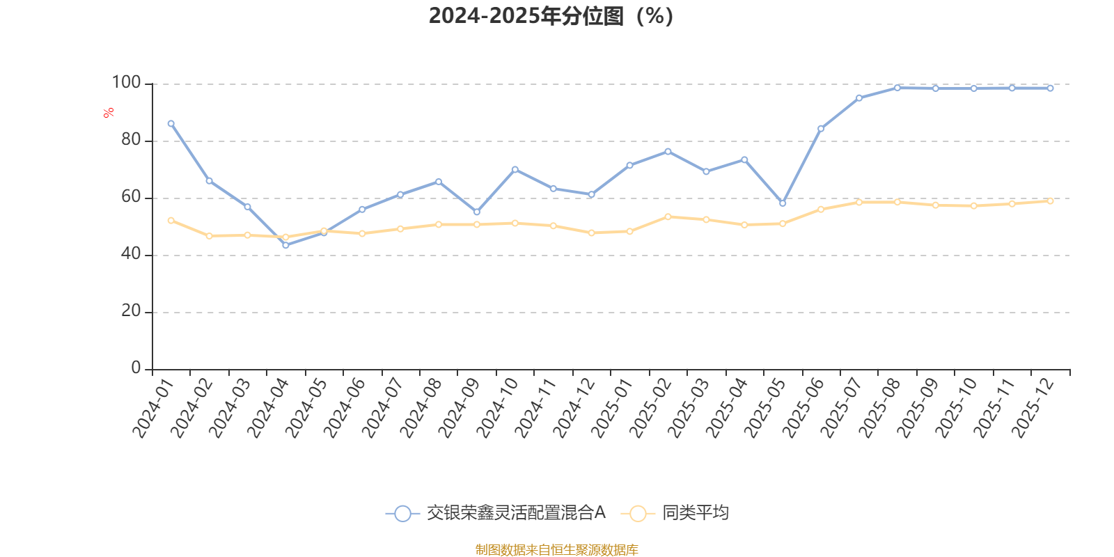 通过所选区间该基金净值增长率分位图,可以观察该基金与同类基金业绩比较情况。图为坐标原点到区间内某时点的净值增长率在同类基金中的分位数。