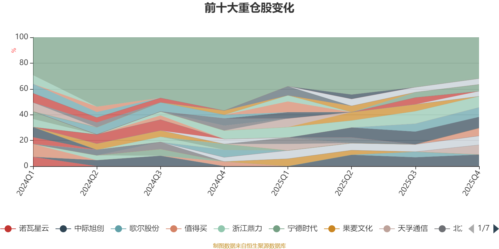 截至2025年四季度末,基金十大重仓股分别是中际旭创、新易盛、寒武纪、天孚通信、工业富联、浙江荣泰、生益科技、世纪华通、骄成超声、阳光电源。