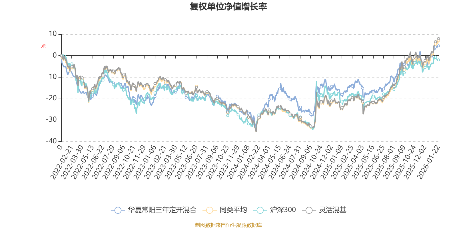 截至1月22日,华夏常阳三年定开混合近三个月复权单位净值增长率为9.02%,位于同类可比基金624/1286;近半年复权单位净值增长率为15.73%,位于同类可比基金797/1286;近一年复权单位净值增长率为25.72%,位于同类可比基金800/1286;近三年复权单位净值增长率为22.50%,位于同类可比基金512/1286。