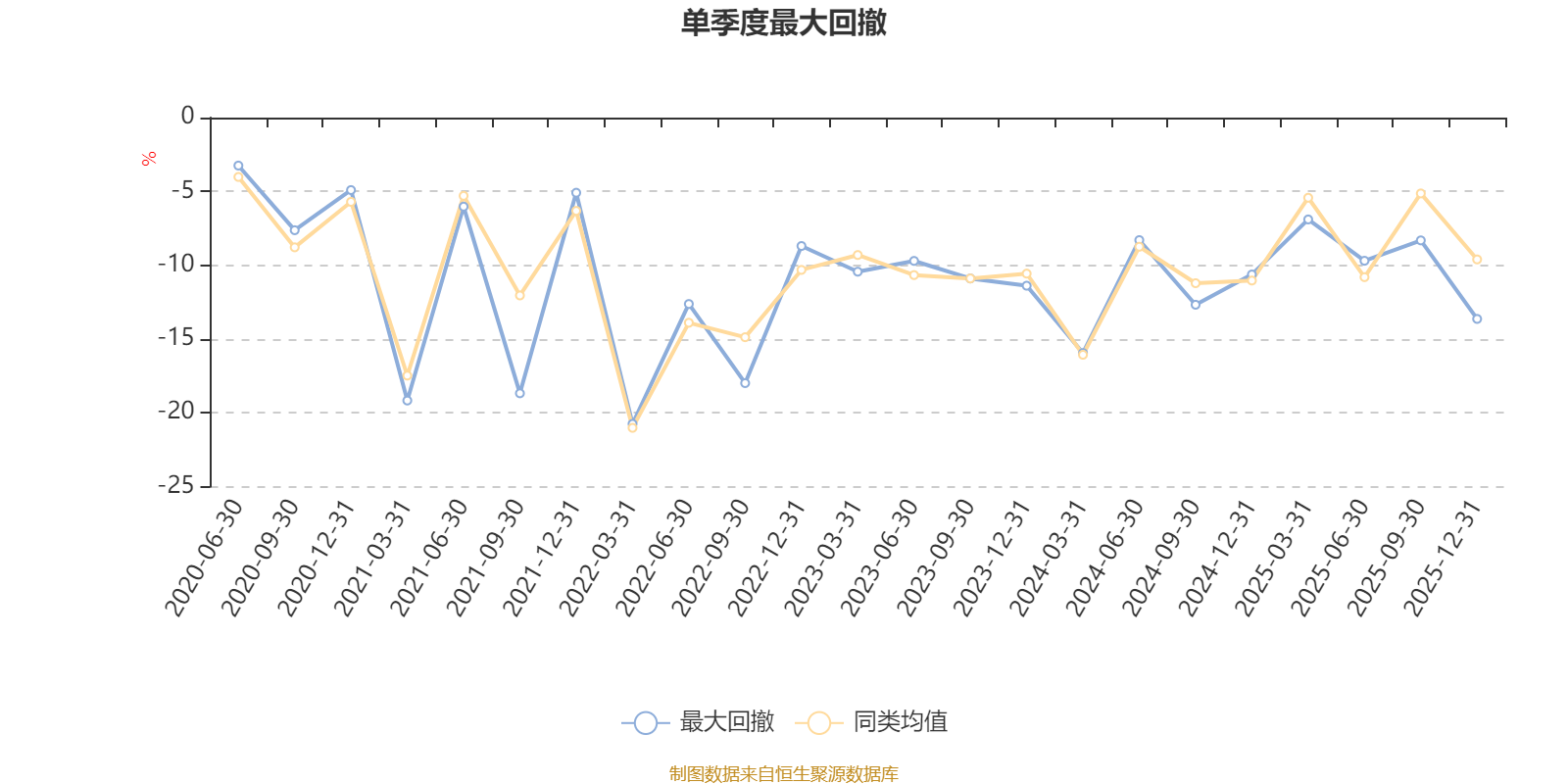 通过所选区间该基金净值增长率分位图,可以观察该基金与同类基金业绩比较情况。图为坐标原点到区间内某时点的净值增长率在同类基金中的分位数。