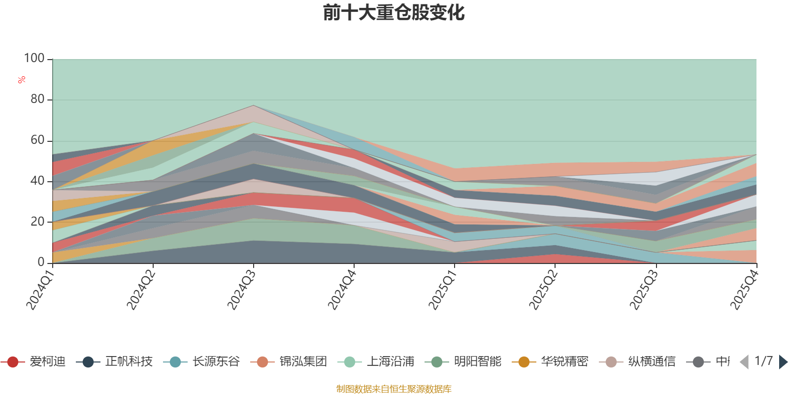 截至2025年四季度末,基金十大重仓股分别是广东宏大、锦泓集团、继峰股份、徐工机械、电连技术、大金重工、上海沿浦、万泽股份、中天科技、众鑫股份。