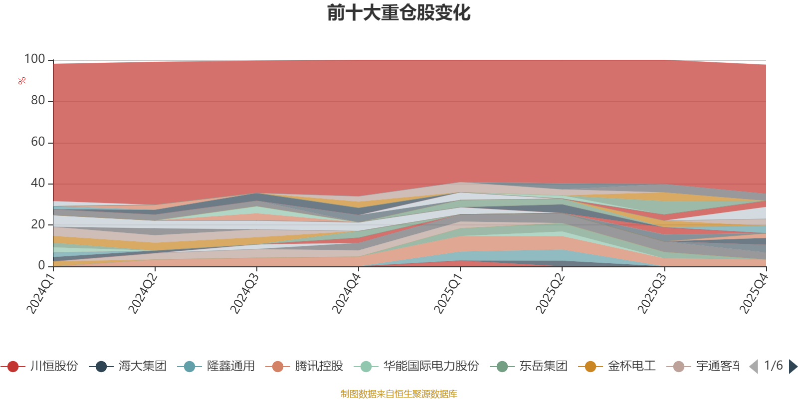 截至2025年四季度末,基金十大重仓股分别是云铝股份、东方电气、中远海能、五矿资源、中国东方航空股份、大金重工、恺英网络、腾讯控股、中际旭创、紫金矿业。