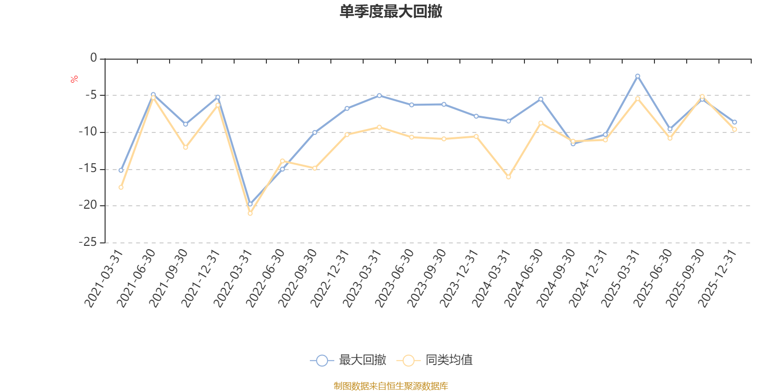 截至1月21日,基金近三年最大回撤为18.74%,同类可比基金排名7/177。单季度最大回撤出现在2022年一季度,为19.75%。
