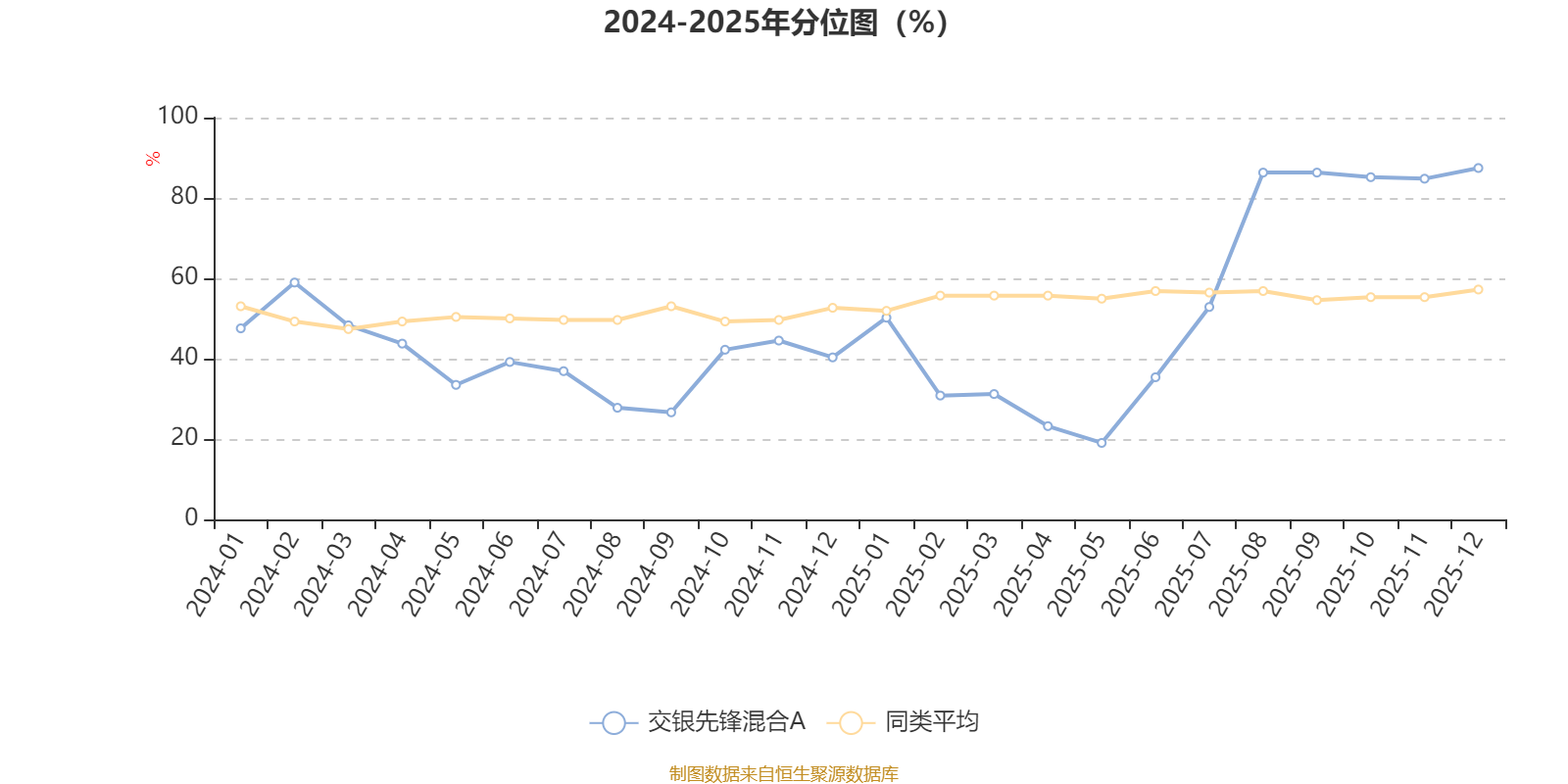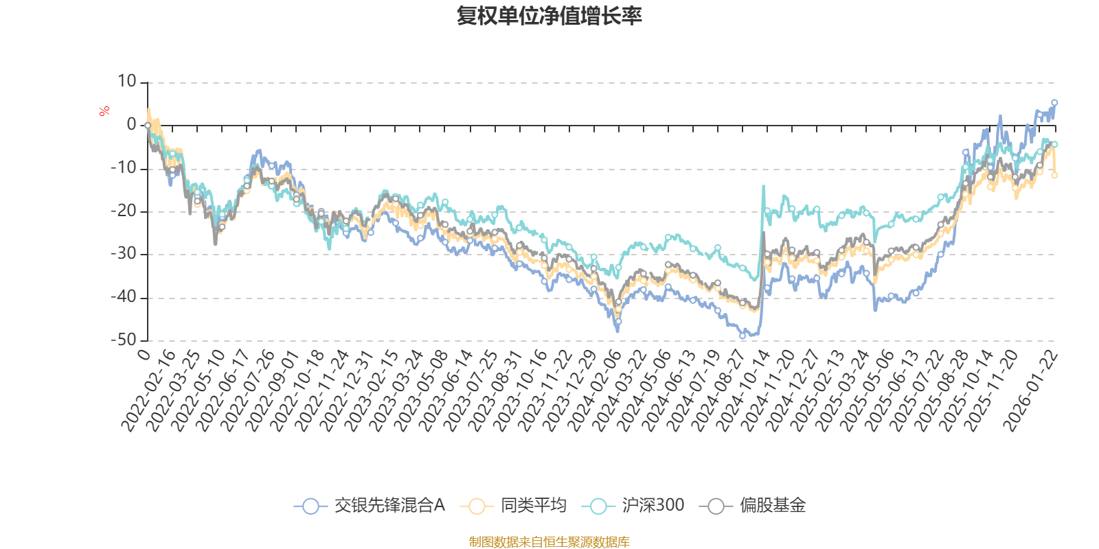 截至1月22日,交银先锋混合A近三个月复权单位净值增长率为11.53%,位于同类可比基金86/265;近半年复权单位净值增长率为50.30%,位于同类可比基金21/265;近一年复权单位净值增长率为61.85%,位于同类可比基金34/265;近三年复权单位净值增长率为31.42%,位于同类可比基金77/256。