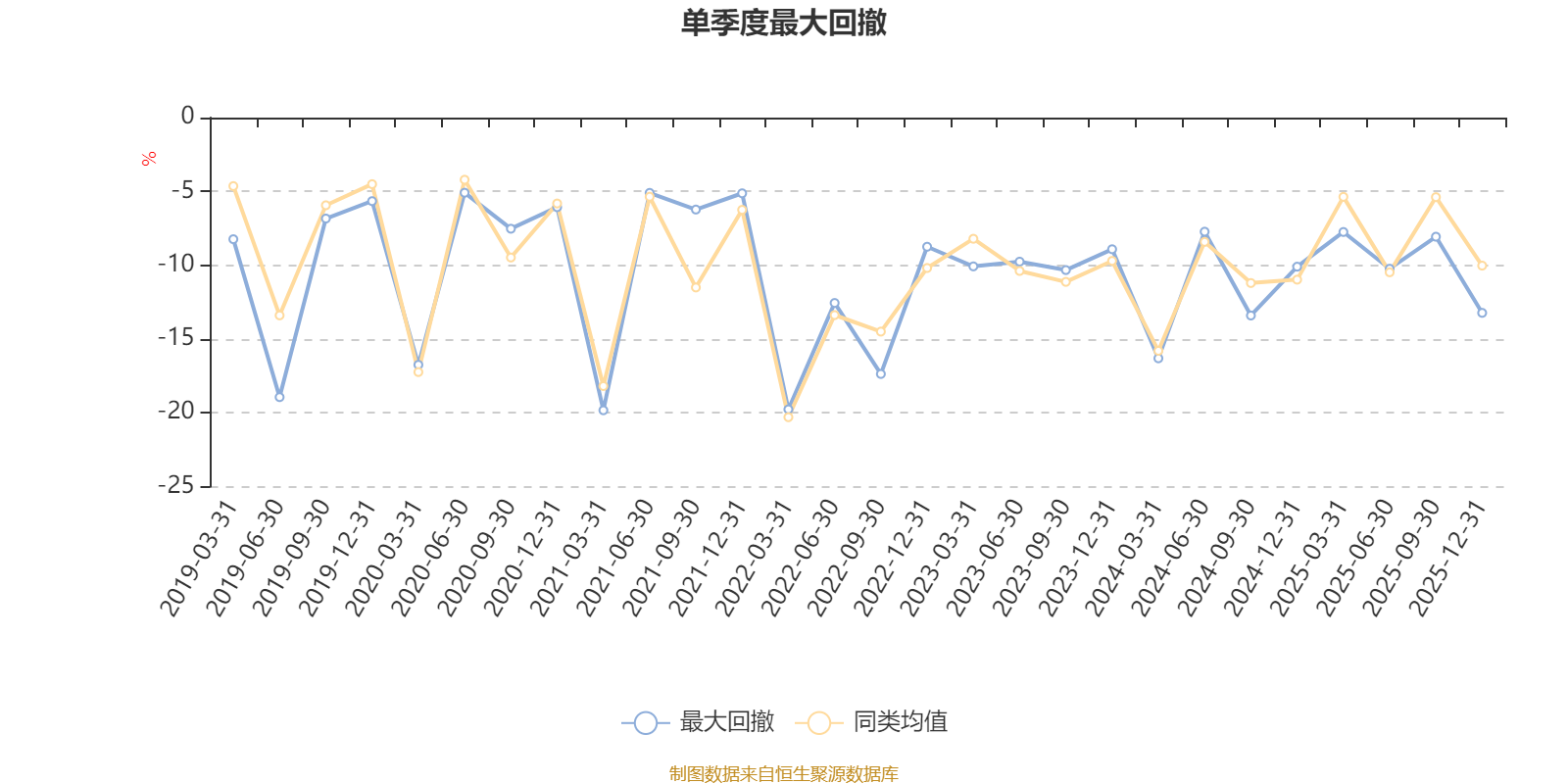通过所选区间该基金净值增长率分位图,可以观察该基金与同类基金业绩比较情况。图为坐标原点到区间内某时点的净值增长率在同类基金中的分位数。