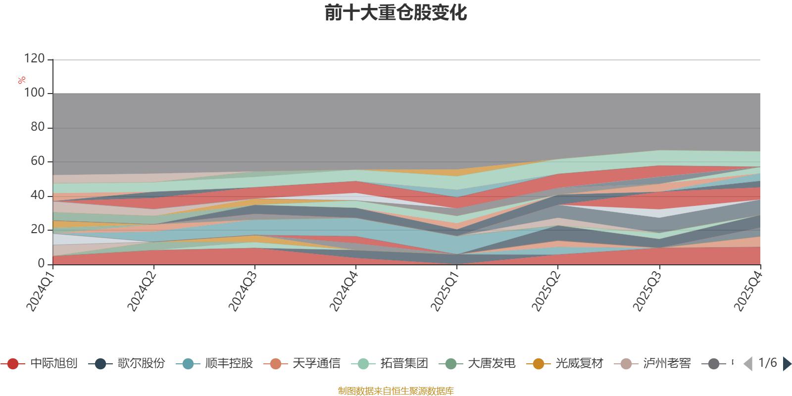 该基金持股集中度较高。截至2025年四季度末,基金十大重仓股分别是中际旭创、恺英网络、新易盛、中材科技、寒武纪、天孚通信、生益科技、多氟多、立讯精密、东方电缆。