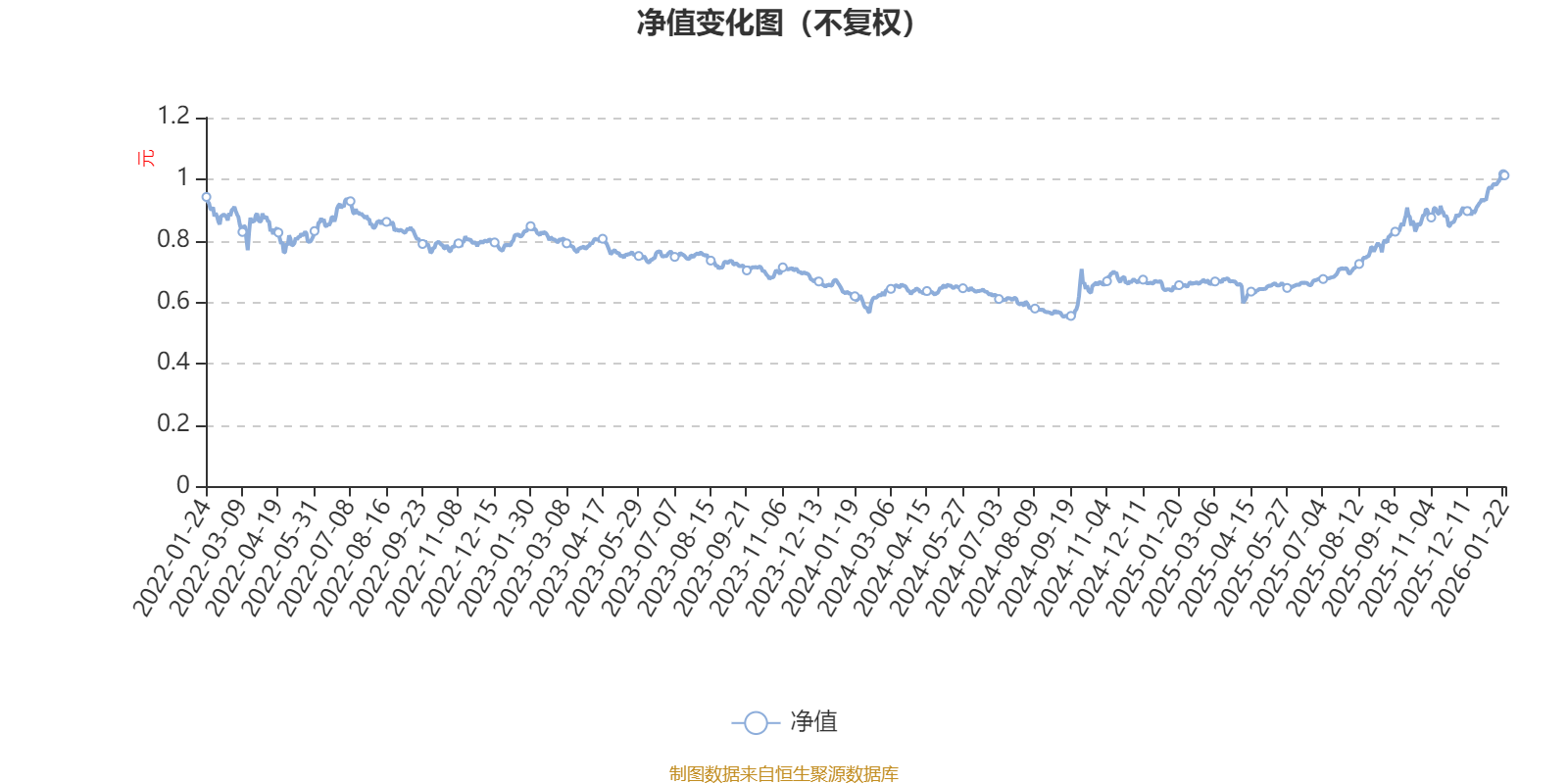 该基金属于偏股混合型基金。截至1月22日,单位净值为1.012元。基金经理是张剑峰,目前管理的2只基金近一年均为正收益。其中,截至1月22日,工银新材料新能源股票近一年复权单位净值增长率最高,达63.38%;工银优质成长混合A最低,为54.45%。