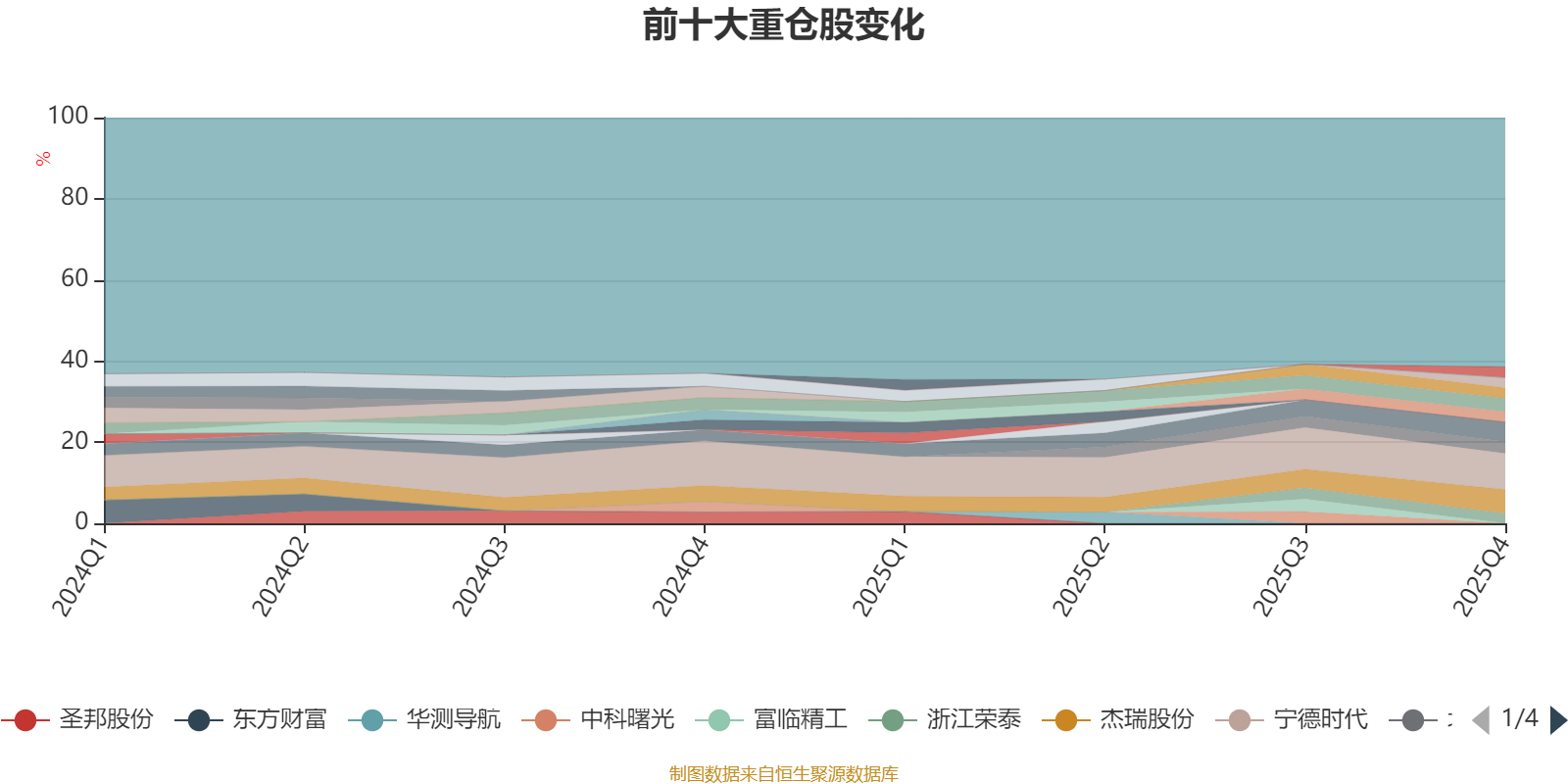 截至2025年四季度末,基金十大重仓股分别是宁德时代、杰瑞股份、紫金矿业、新宙邦、北方华创、洛阳钼业、工业富联、厦钨新能、杭氧股份、浙江荣泰。