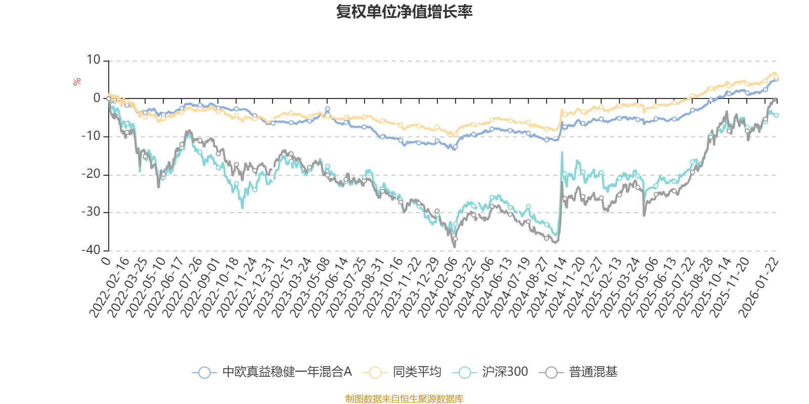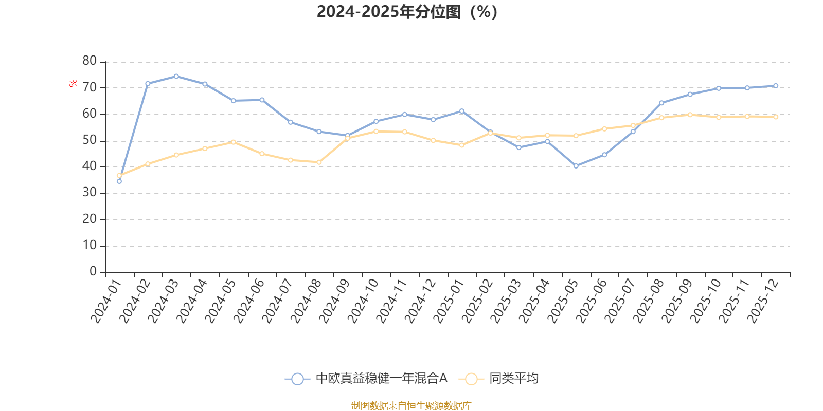 截至1月22日,中欧真益稳健一年混合A近三个月复权单位净值增长率为3.88%,位于同类可比基金124/629;近半年复权单位净值增长率为8.44%,位于同类可比基金103/629;近一年复权单位净值增长率为11.33%,位于同类可比基金164/626;近三年复权单位净值增长率为11.84%,位于同类可比基金278/564。