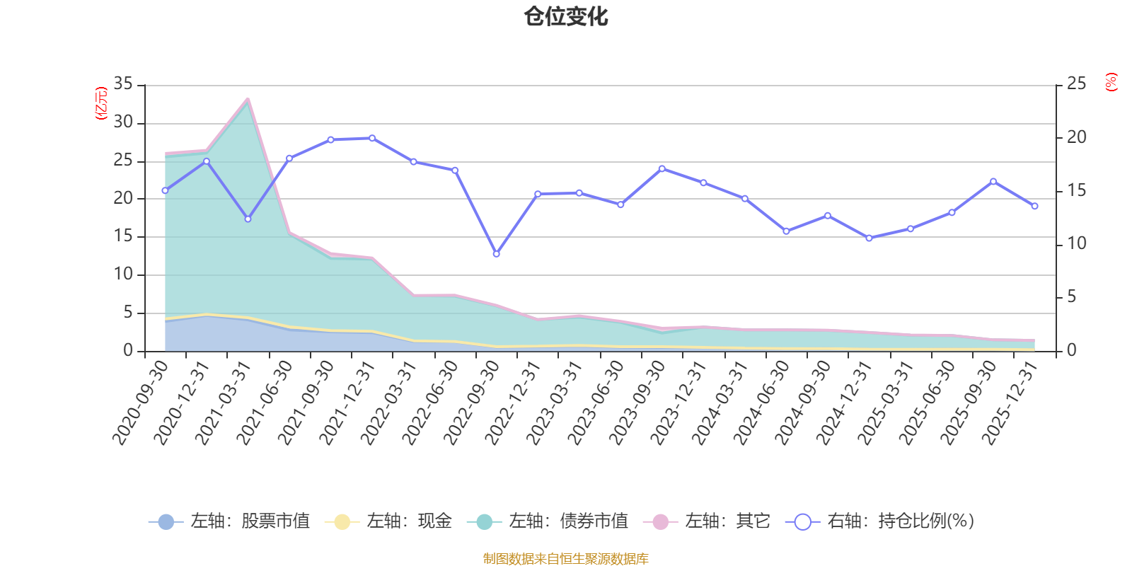 基金管理人在四季报中表示,操作方面,组合四季度整体是小幅减仓权益,包括股票和转债,主要减仓的方向也是科技相关,主要是考虑到三季度成长价值分化比较大,四季度需要再平衡。展望2026年一季度,我们更为关注科技板块,但会尽量避开前期涨幅过大,以及交易过于拥挤的方向,更多关注新兴产业,或者偏低位的科技板块。