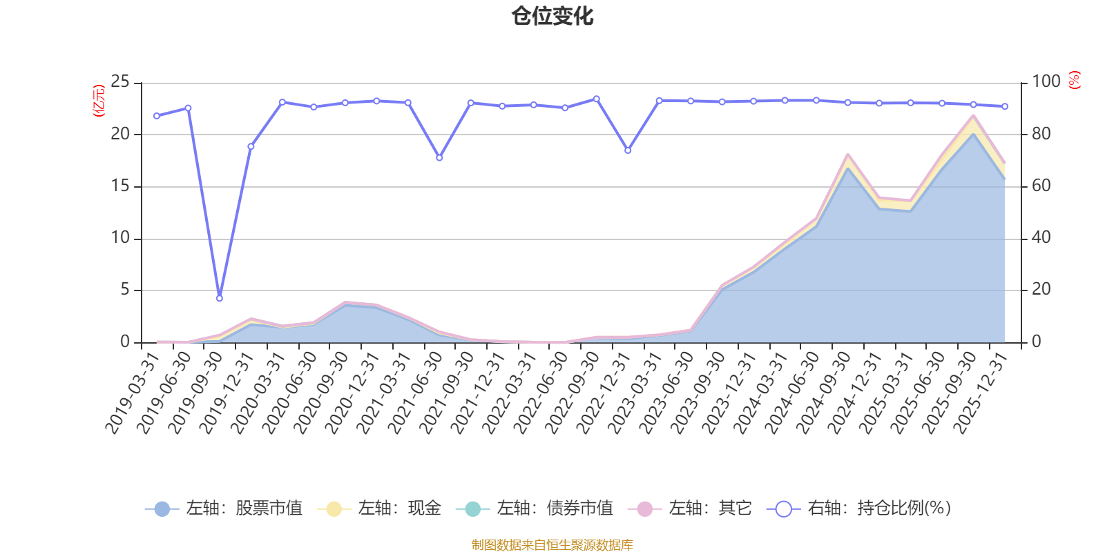 据定期报告数据统计,近三年平均股票仓位为92.48%,同类平均为86.12%。2022年三季度末基金达到93.82%的最高仓位,2019年三季度末最低,为17.06%。