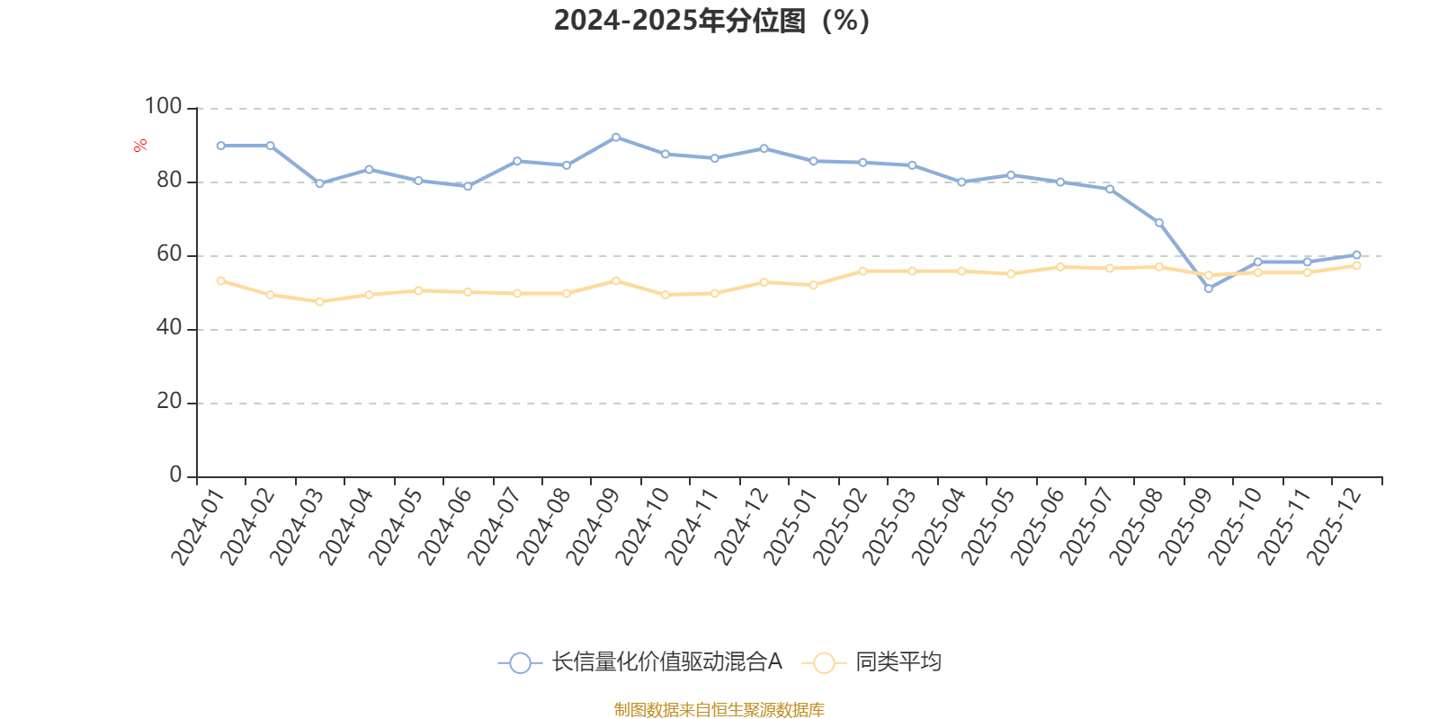 通过所选区间该基金净值增长率分位图,可以观察该基金与同类基金业绩比较情况。图为坐标原点到区间内某时点的净值增长率在同类基金中的分位数。