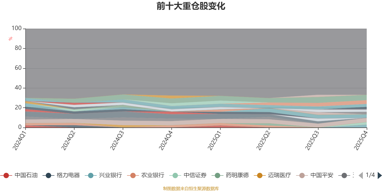 截至2025年四季度末,基金十大重仓股分别是宁德时代、中国平安、紫金矿业、招商银行、美的集团、兴业银行、中信证券、中际旭创、恒瑞医药、工业富联。