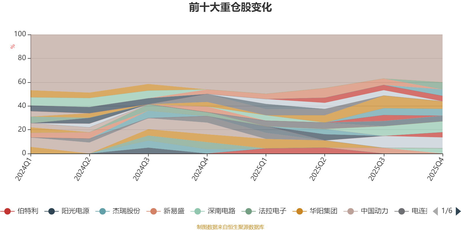 该基金持股集中度较高。截至2025年四季度末,基金十大重仓股分别是生益科技、寒武纪、沪电股份、中际旭创、世纪华通、中钨高新、工业富联、科达制造、深南电路、盛屯矿业。