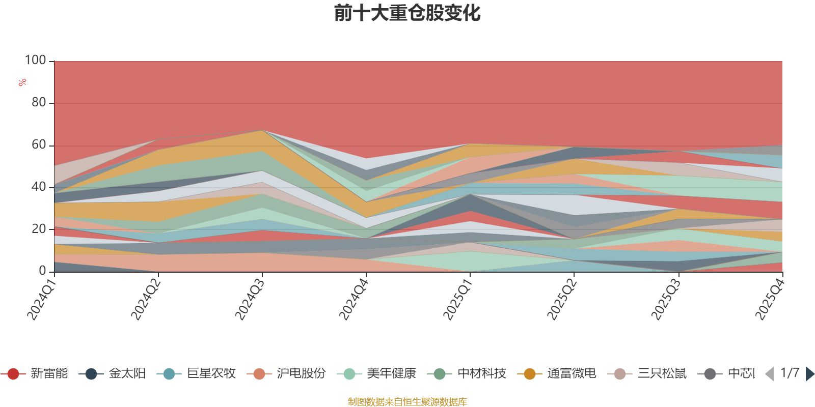 该基金持股集中度较高。截至2025年四季度末,基金十大重仓股分别是新泉股份、恒勃股份、斯菱智驱、生益科技、日盈电子、中材科技、统联精密、景旺电子、宏和科技、新雷能。