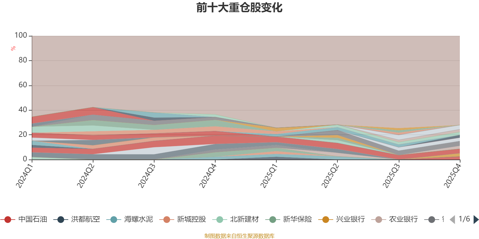 截至2025年四季度末,基金十大重仓股分别是中国平安、中信证券、恒瑞医药、徐工机械、兴业银行、中国石油、贵州茅台、中国铝业、晋控煤业、万华化学。
