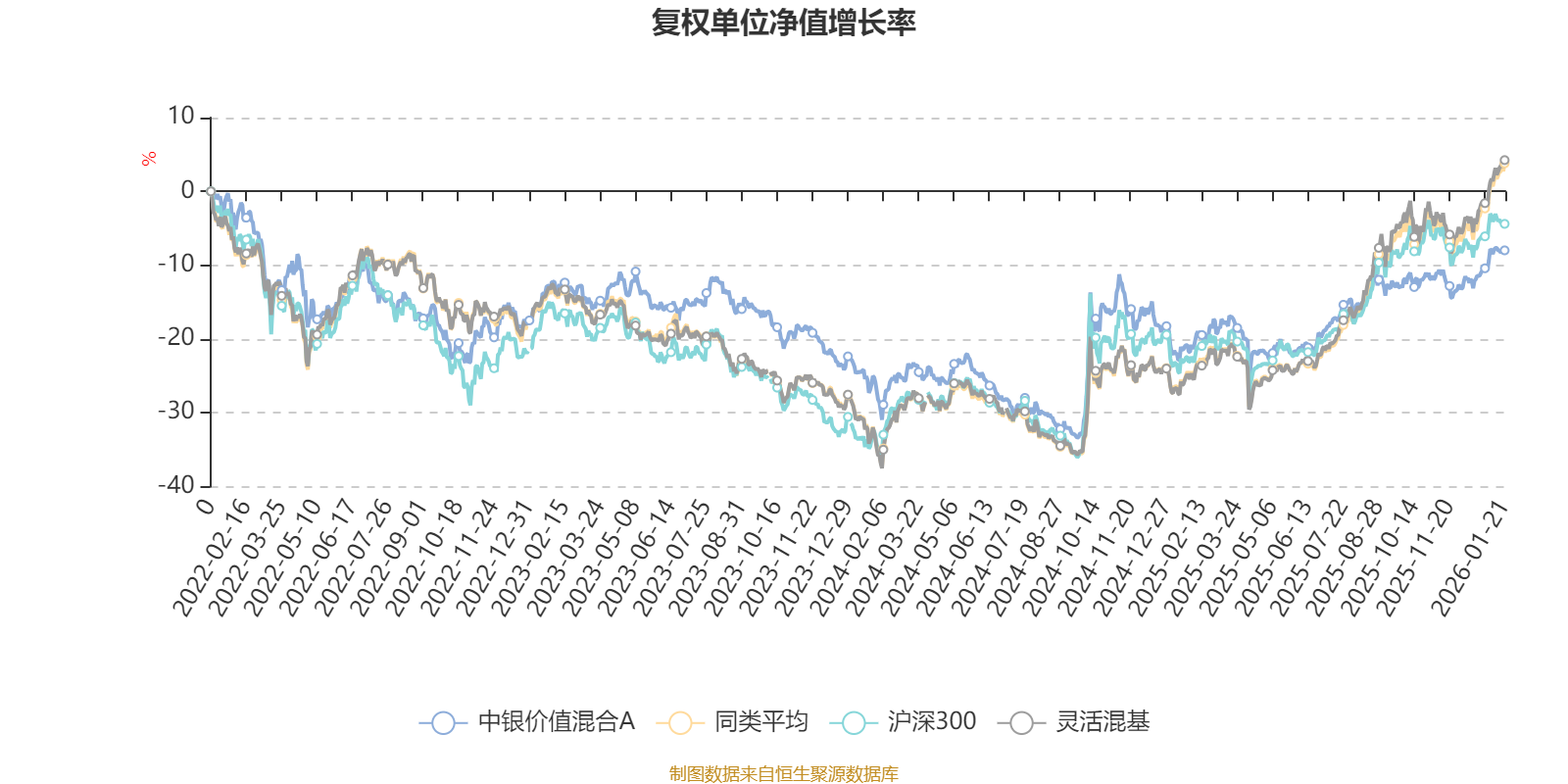 截至1月21日,中银价值混合A近三个月复权单位净值增长率为4.45%,位于同类可比基金858/1286;近半年复权单位净值增长率为9.32%,位于同类可比基金964/1286;近一年复权单位净值增长率为16.22%,位于同类可比基金987/1286;近三年复权单位净值增长率为5.53%,位于同类可比基金906/1286。