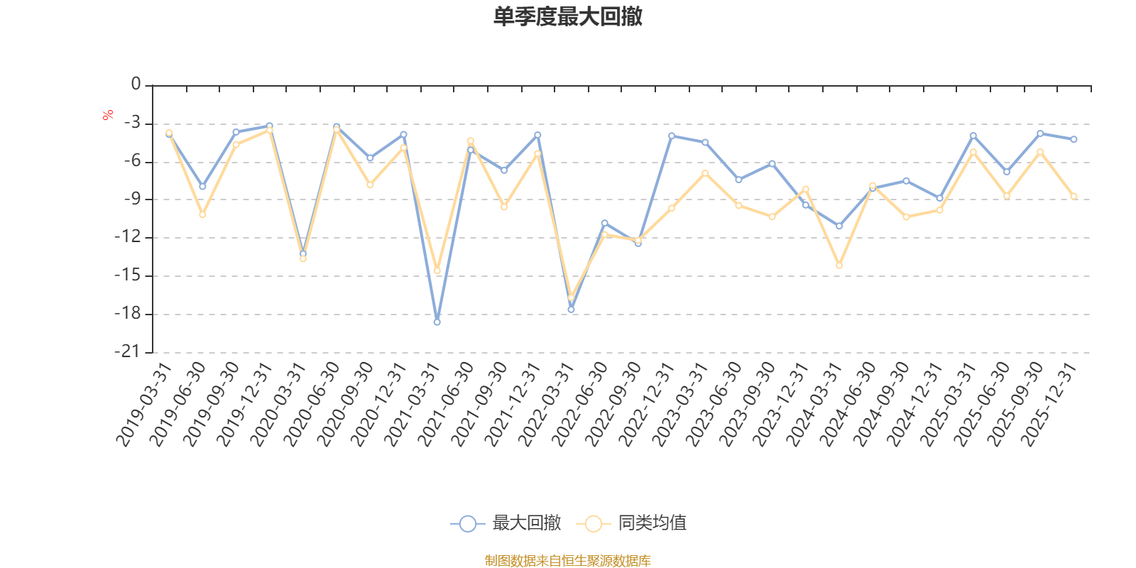 截至1月21日,基金近三年最大回撤为25.29%,同类可比基金排名391/1264。单季度最大回撤出现在2021年一季度,为18.61%。