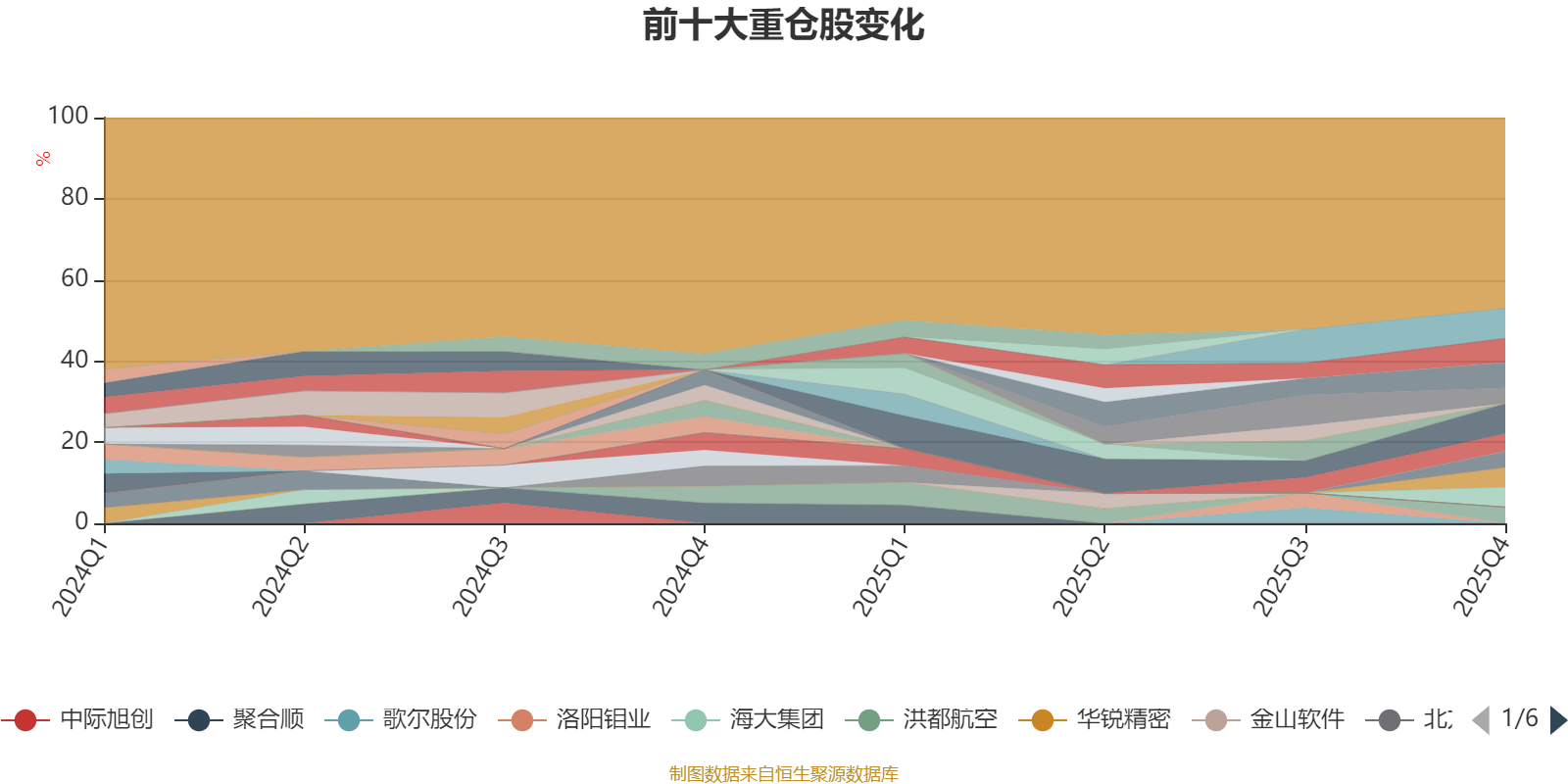 截至2025年四季度末,基金十大重仓股分别是腾讯控股、英科医疗、九号公司、柏楚电子、紫金黄金国际、科达制造、新易盛、洪都航空、紫金矿业、睿创微纳。