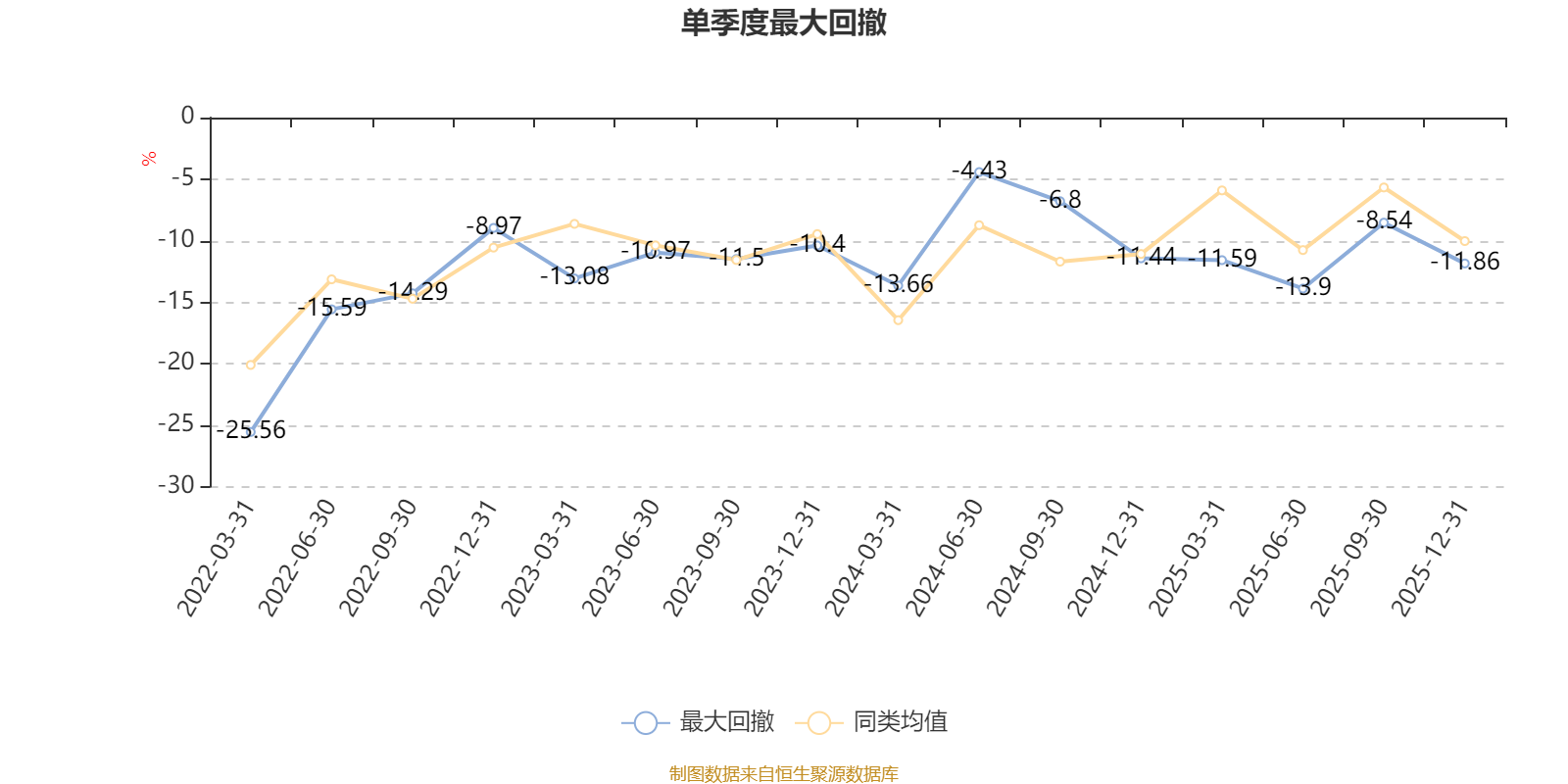 截至1月22日,基金近三年最大回撤为38.58%,同类可比基金排名345/526。单季度最大回撤出现在2022年一季度,为25.56%。